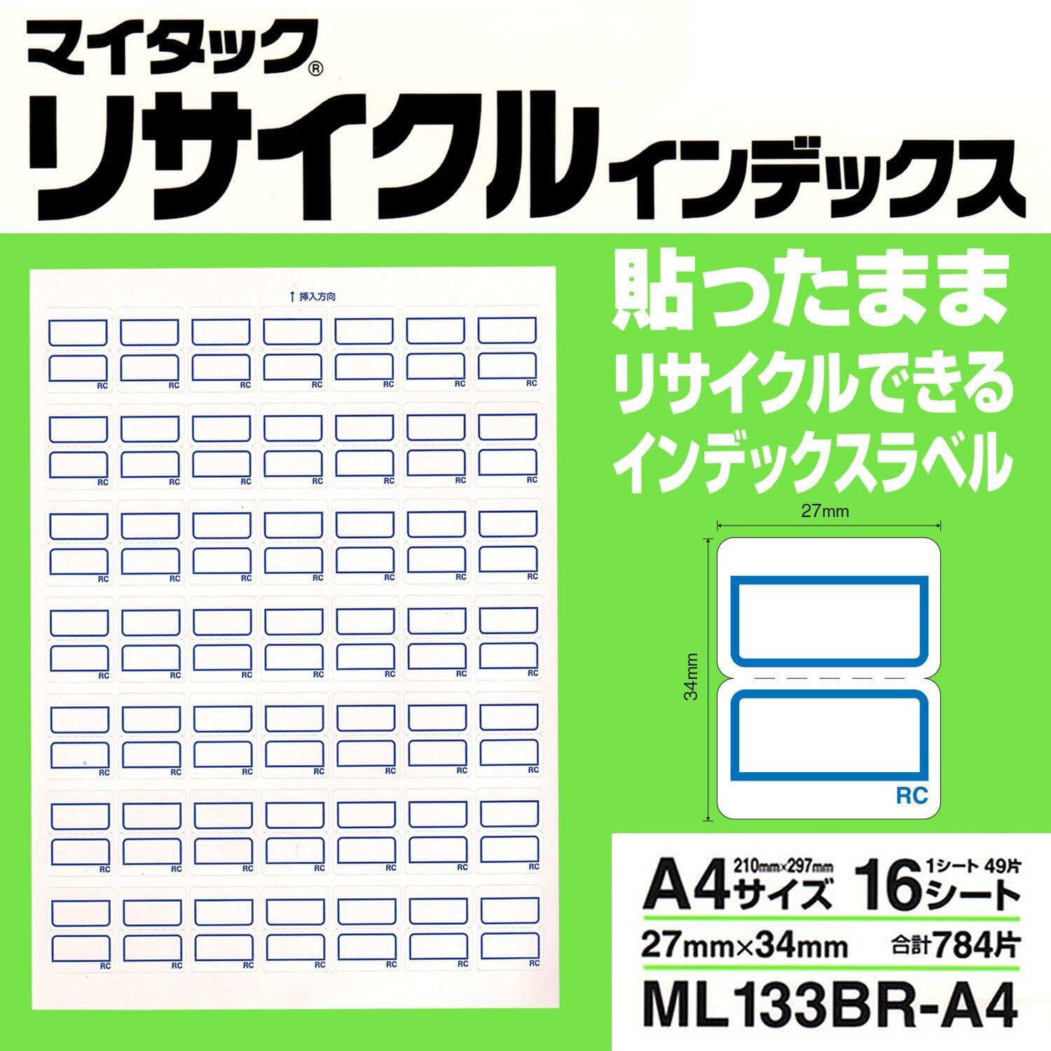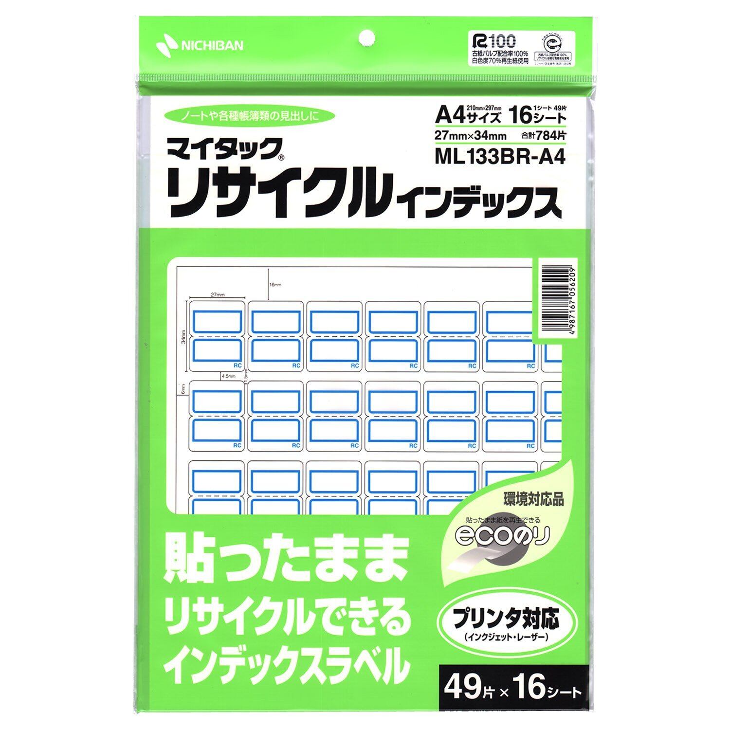 ニチバン マイタック リサイクルインデックス 大 A4判 ML133BR-A4 16シート 青