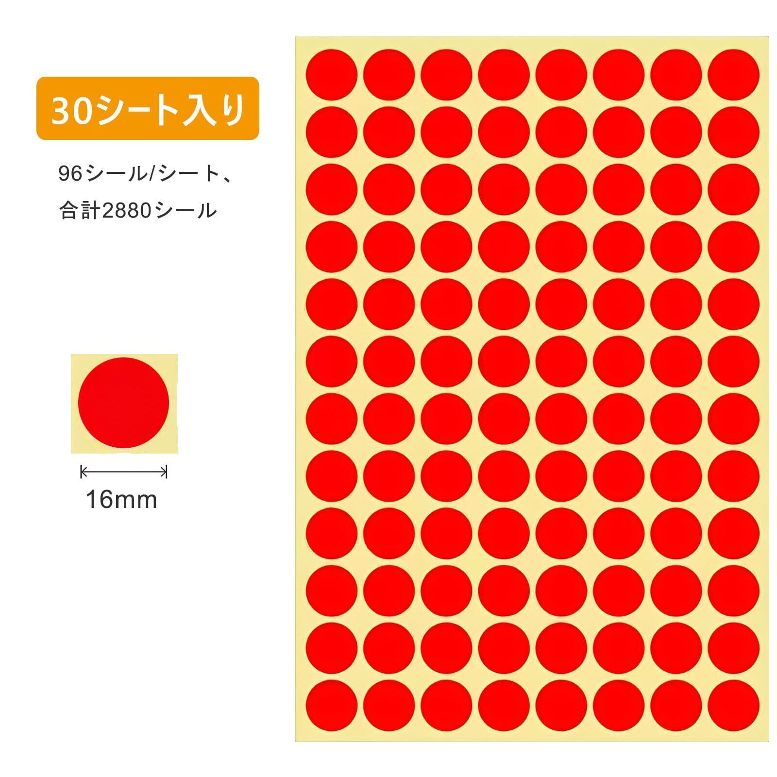 カラーラベル 赤 丸型 16 mm 30シート 2880片入り 丸シール 円形 ステッカー ラベルシール 小さい 大容量 お徳用 事務用品 オフィス用 単色 レッド 1.6 cm センチ