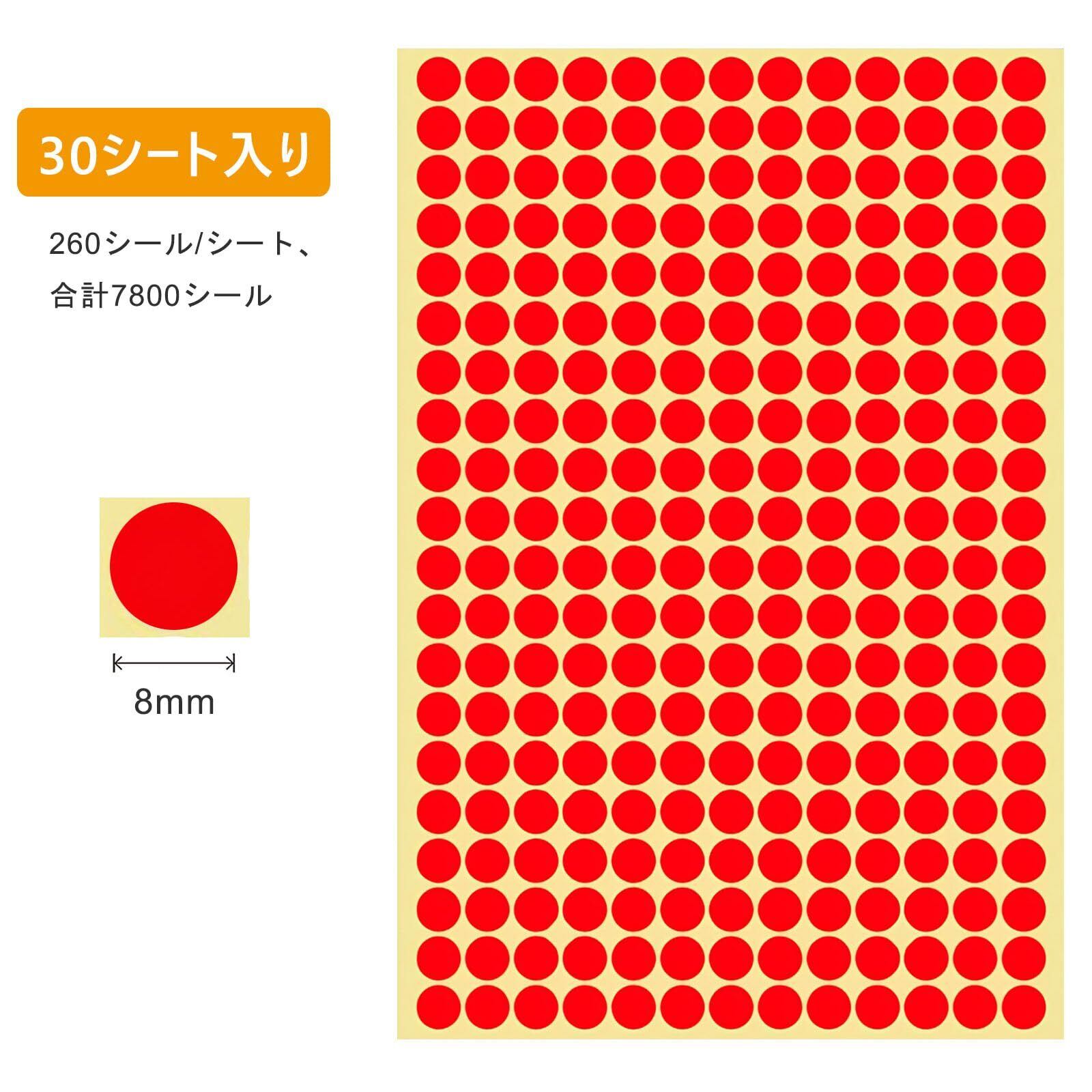 【2022最新】カラーラベル 赤 丸型 8 mm 30シート 7800片入り 丸シール 円形 ステッカー ラベルシール 小さい 大容量 お徳用 事務用品 オフィス用 単色 レッド 0.8 cm センチ