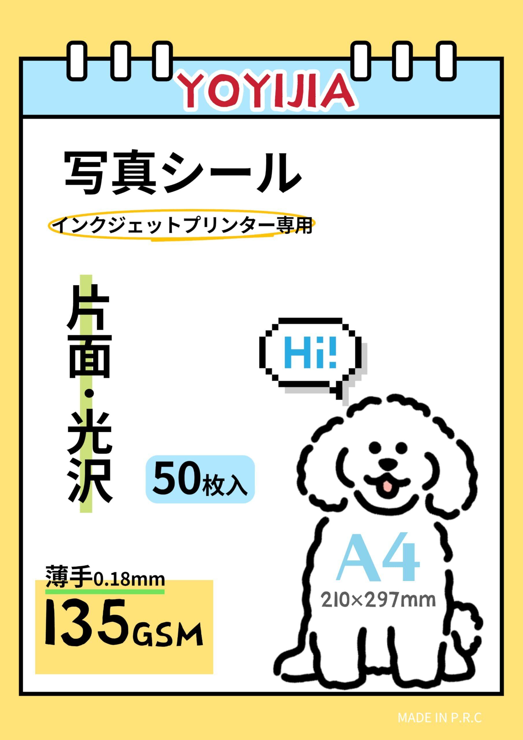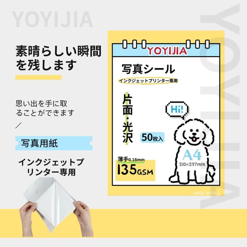 【数量限定】YOYIJIA写真シール ラベルシール A4光沢紙 手作りステッカー用紙 ノーカット貼れる 50枚入り インクジェット用紙 ホワイト