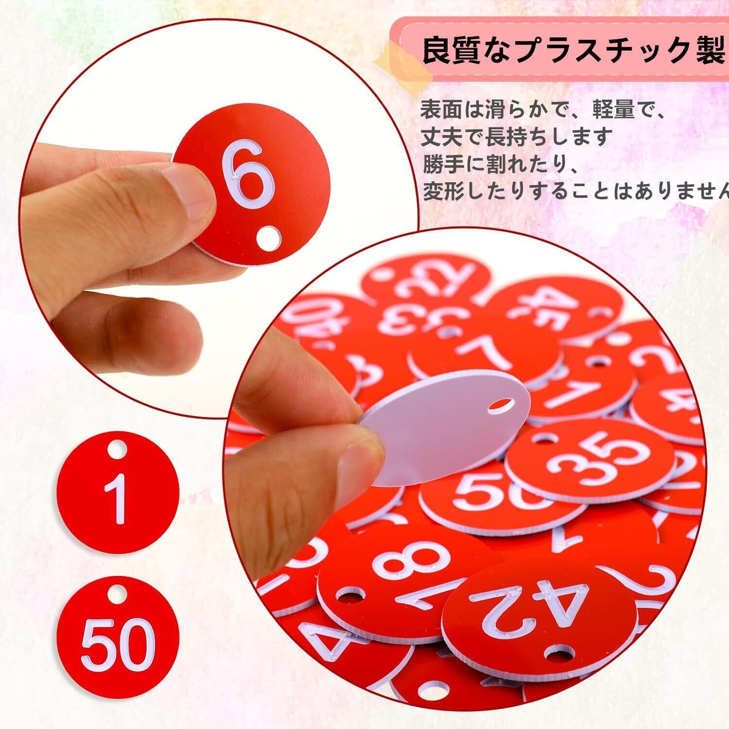 番号札 50個セット1-50 数字タグ プラスチック ID番号ハングタグ 穴付き 刻印 ラウンド 番号マーク 札 お札クリップ 識別タグ ロッカー クローク 預かり番号 ゴルフ タグ キーボックス キャビネット 整理コーディングタグ 学校、オフィス、ジム、スーパーの利用に適している (レッド)