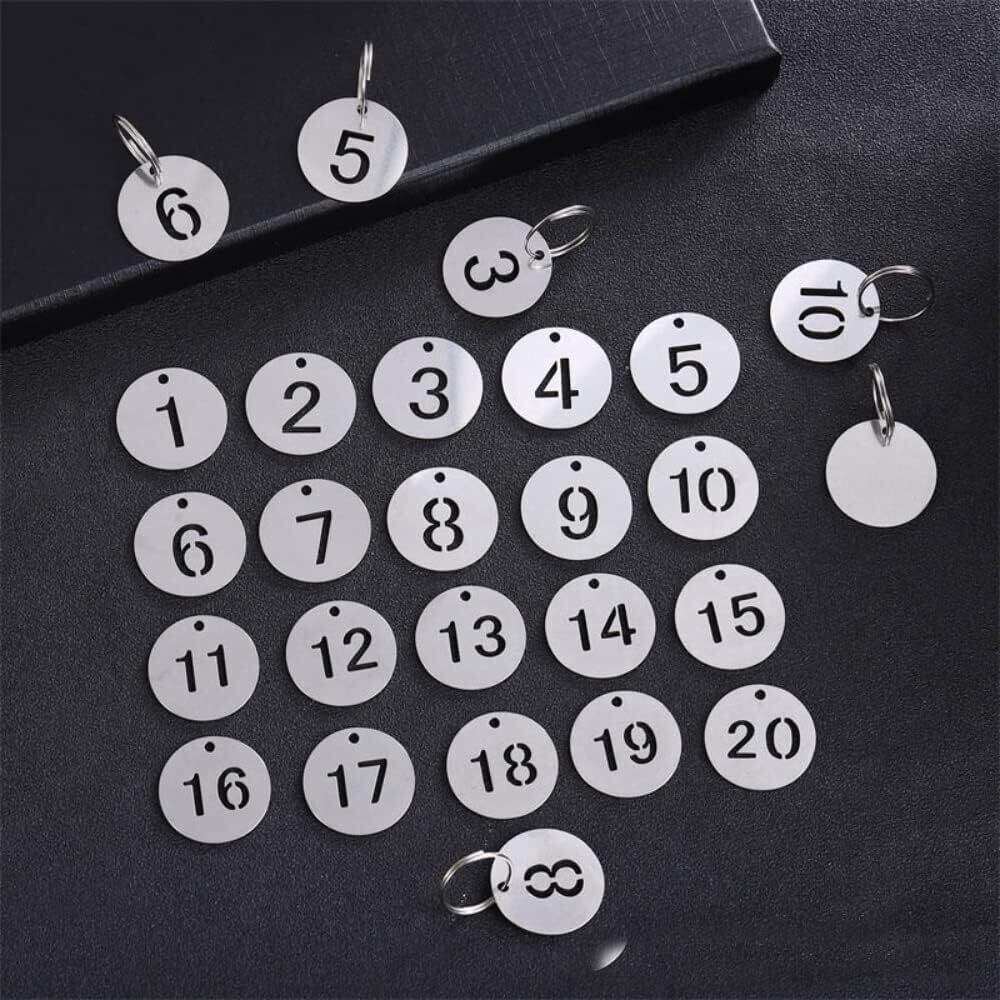 LIKENNY ドア番号タグ (23mm/ステンレス鋼) 鍵 番号札 クローク 両面 キーリング付き 1~20