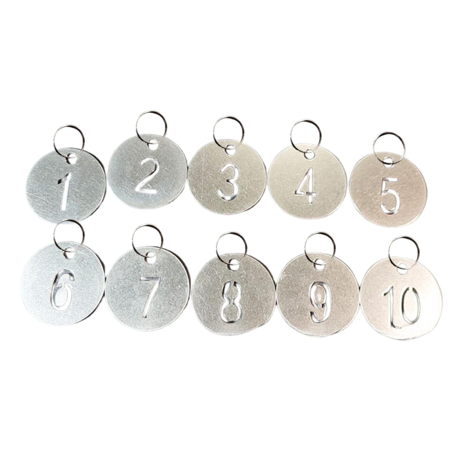 [S.T.S.G] 番号タグ ドア ステンレス 両面 番号札 クローク キーリング付き ロッカー ドア番号 防水 (円形、1~10番)