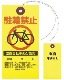 〔プロメディア〕放置自転車・迷惑駐輪の警告札 50枚 (黄-駐輪禁止-非防水下げ札)