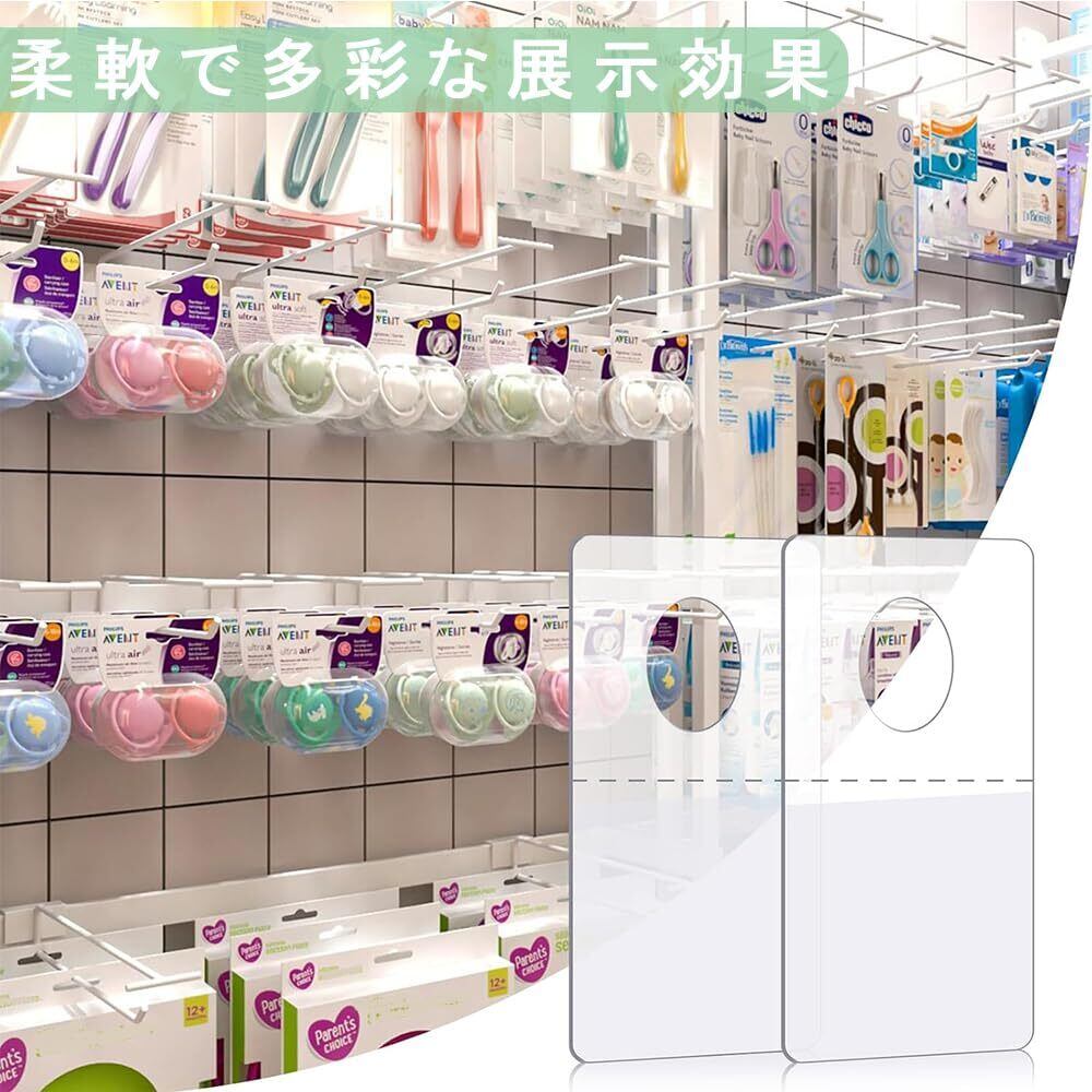 【耐久性のある信頼性のある素材】PVC PETプラスチック製のスリット穴吊り札は丈夫で耐久性があり、破損しにくく、繰り返し使用でき、商品を安定して零售店やスーパーマーケットに展示し。