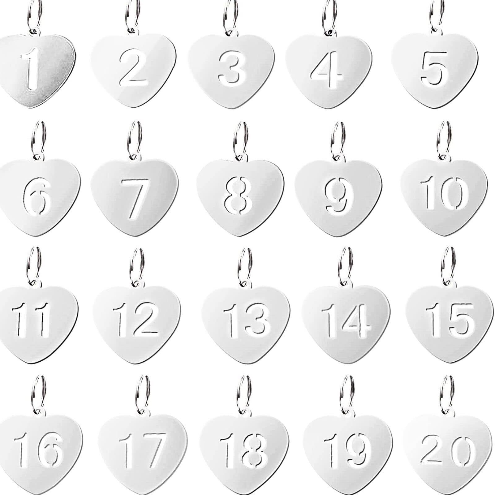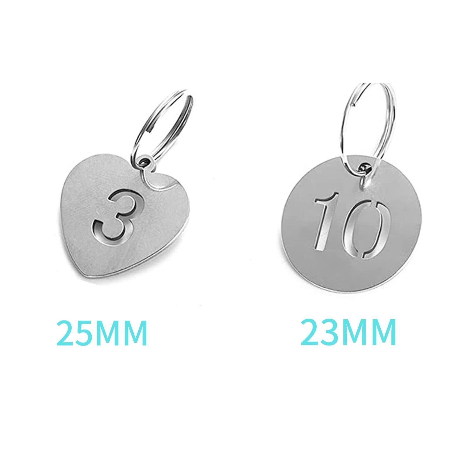 Pacify ドア番号タグ 番号札 クローク ハート形 20個セット おしゃれ 鍵 番号 ステンレス製 キーホルダー付き 業務管理用デジタルラベル 両面 透かし彫り バリなし 防水 耐高温性(ハート形,番号1-20)