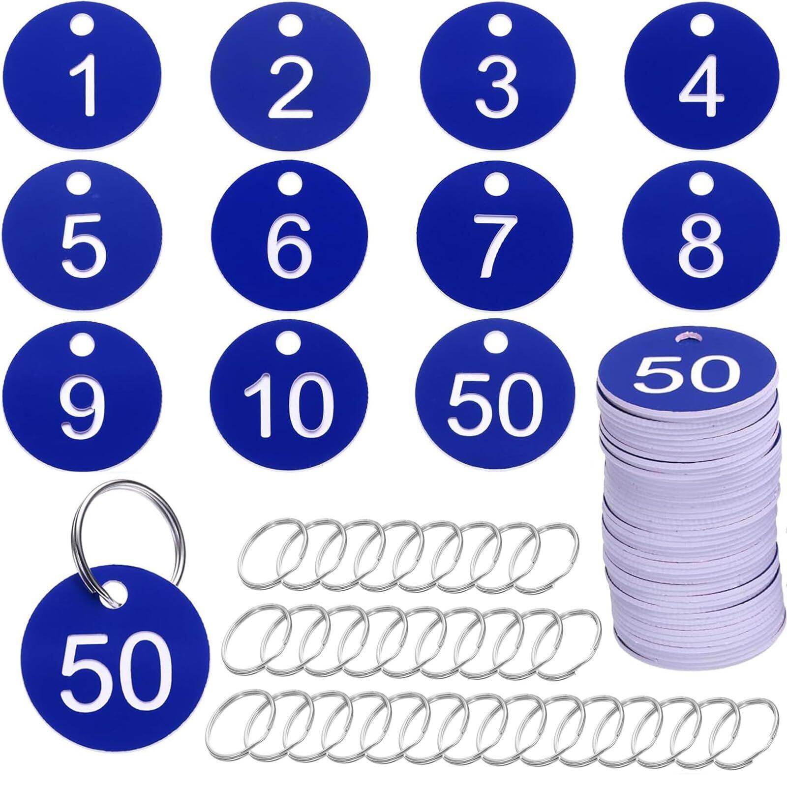 番号札 1-50連番 プラスチック製 防水 ナンバータグ キーリング付き ロッカー・クローク・ドア・荷物管理用 キータグ 荷札タグ 50枚セット