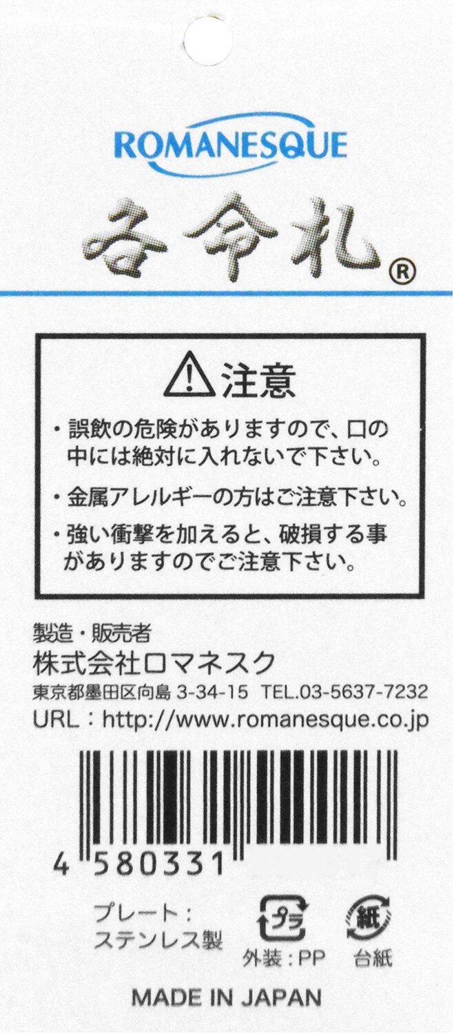 【在庫処分】ステンレスネームプレート 各命札 中島 No.238