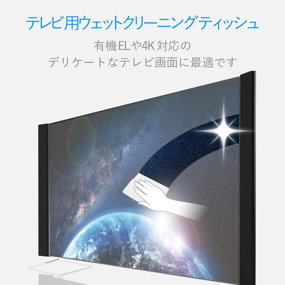 デリケートなテレビ画面に最適な有機EL/4Kテレビ対応のテレビ用ウェットティッシュです。