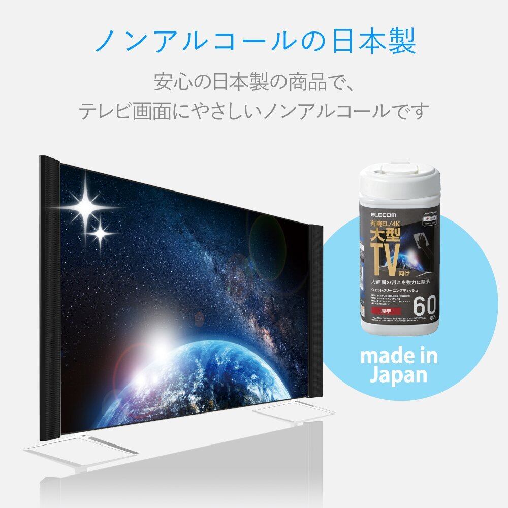 エレコム 大型TVクリーナーウェットティッシュボトルタイプ プラスチック 60枚入 AVD-TVWCB60