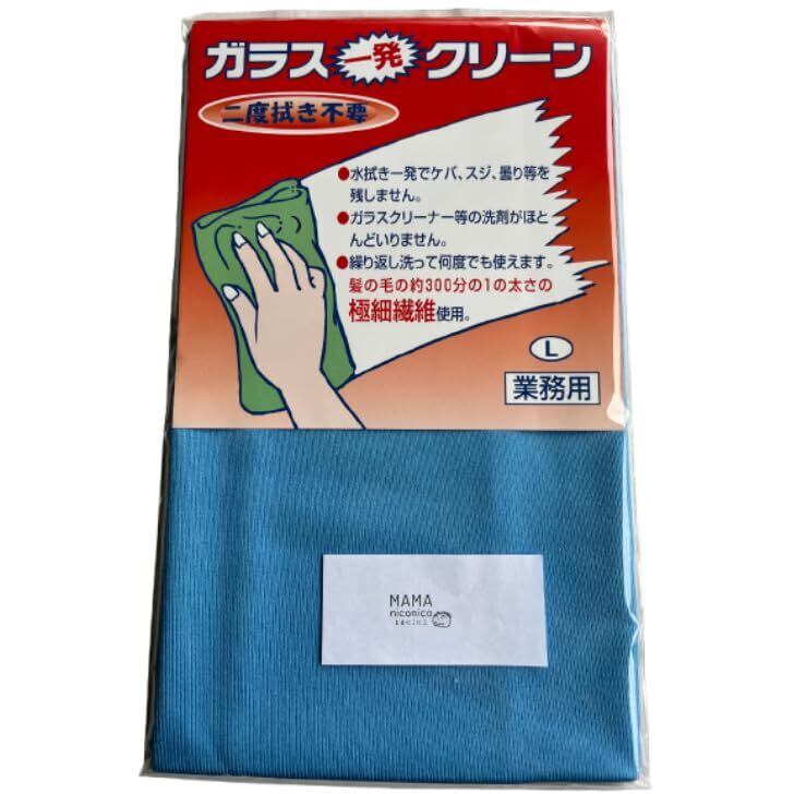 ガラス一発クリーン L ブルー 40×50cm マイクロファイバークロス ままにこにこ