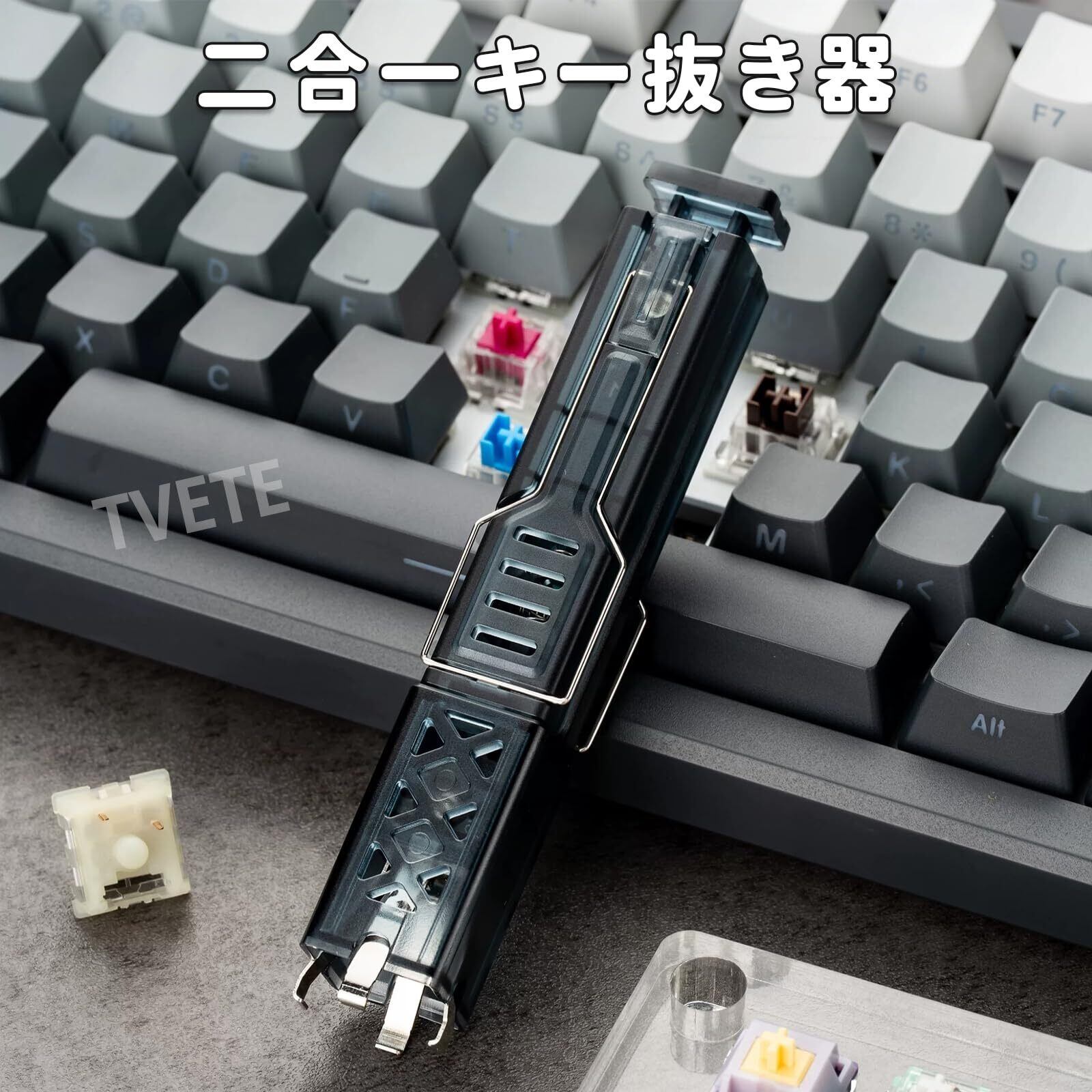【2-in 1機能設計】キーキャップはずしとキースイッチプラーの2役を兼ねるツール。四爪クランプがキーキャップやキースイッチを安定保持し、ゲーーミングキーーボードのホットスワップや掃除を効率化。キープラーとして日常のメンテナンスを迅速化します。