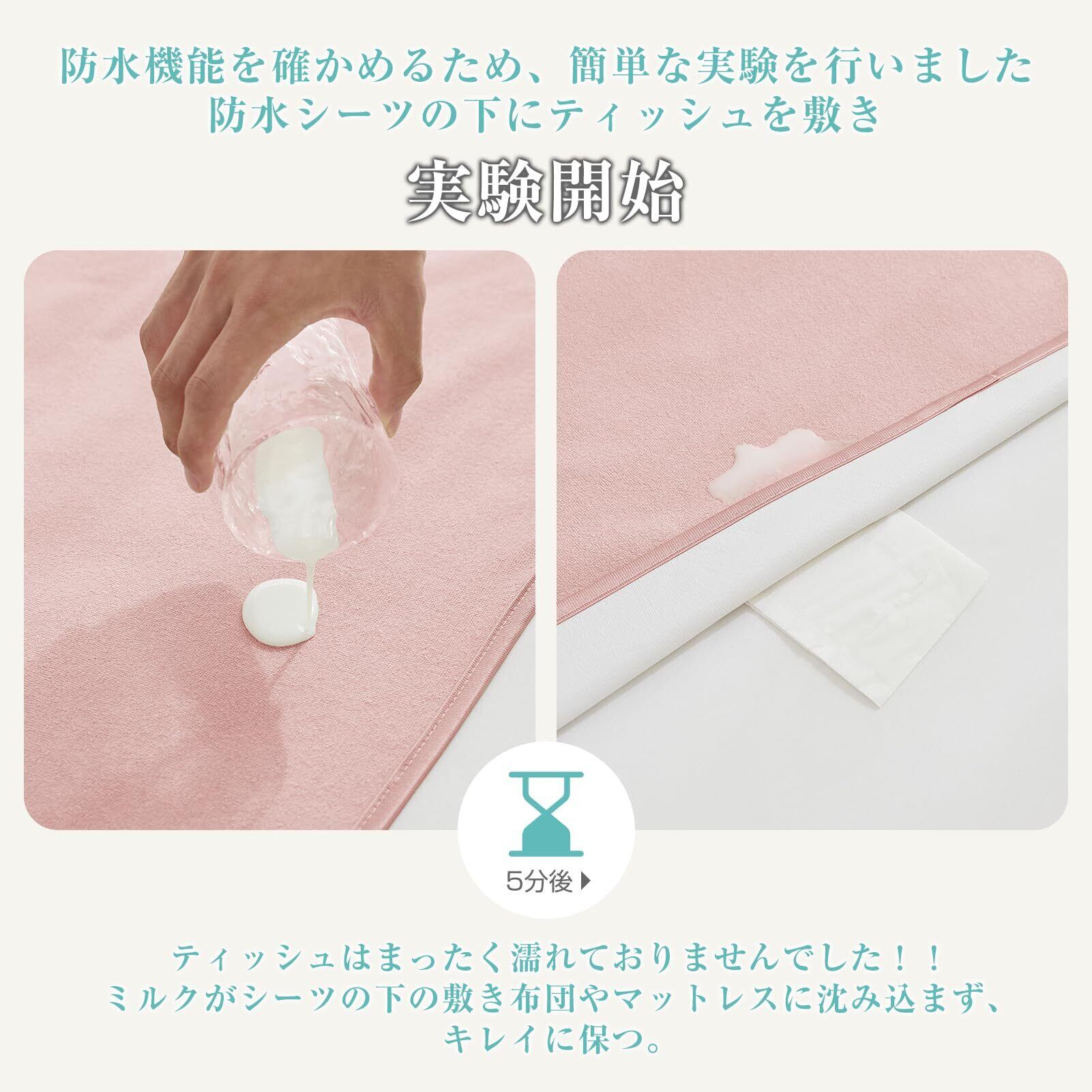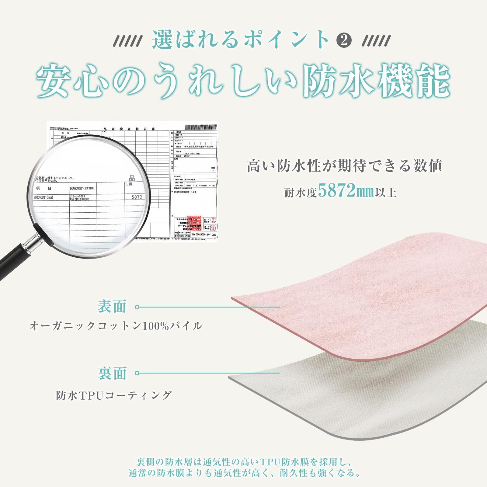 【しっかり防水】高品質のポリウレタンコーティングが液体の浸透を効果的に防ぎます。ベッドマットレスや布団を液体のしみや湿気から守ります。耐水性は国内試験所で検査済み。耐水度5872を取得、他の介護用防水シーツやおねしょシーツを圧倒する耐水性があり、朝までお布団をしっかりガード!