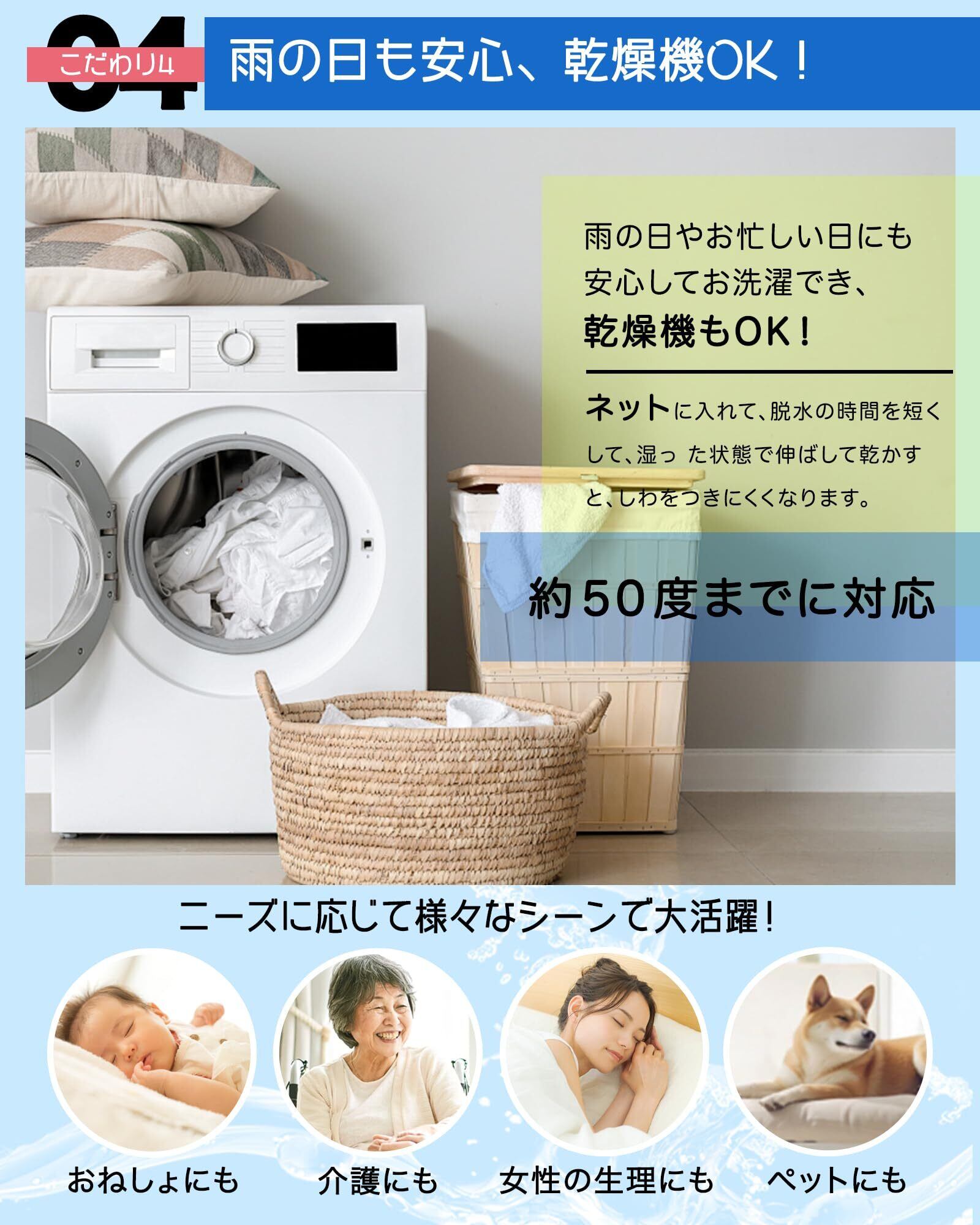 おねしょシーツが耐久性があり、洗濯機で丸洗いができるため、清潔な環境を保ちながら手間を省きます。