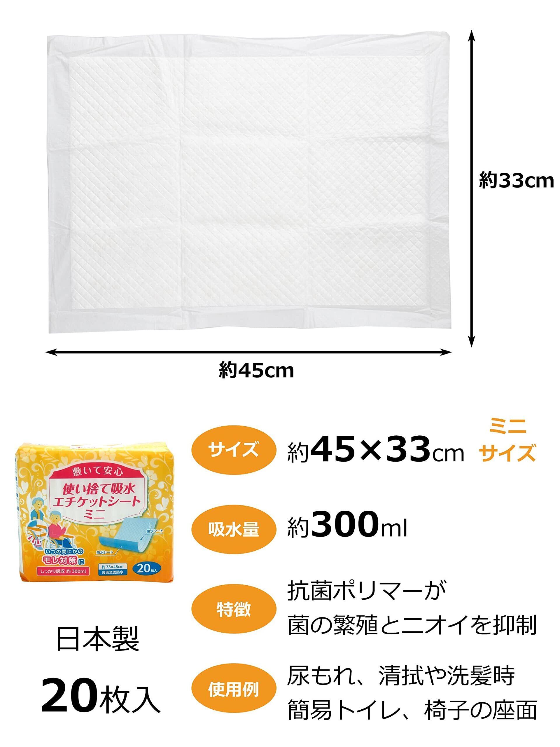 ストリックスデザイン 防水シート 使い捨て 吸水エチケットシート 20枚 45×33cm 300ml ミニ ホワイト 抗菌ポリマー 菌の繁殖とニオイを抑える 敷いて安心 介護 洗浄 洗髪 ソファー SK-002