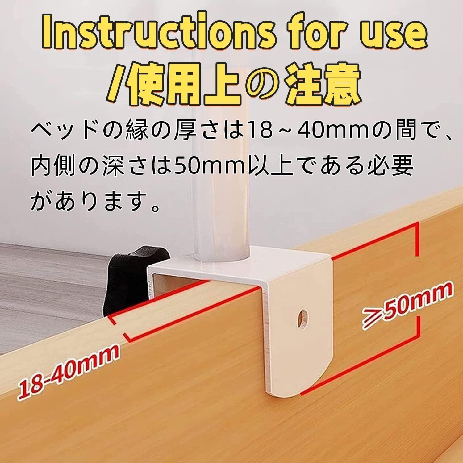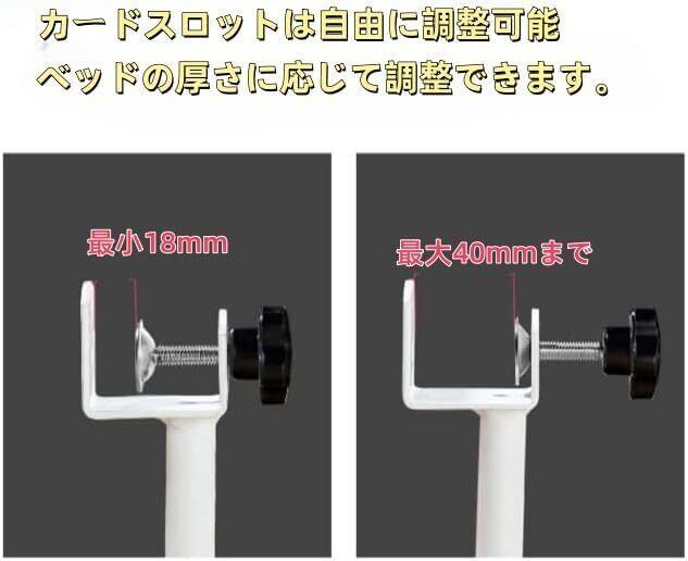 【サイズと調整可能なスロット】サイズ:46×30cm。対応するベッドの縁の厚さは18~40mm、内側の深さは50mm以上である必要があります。ベッドの左右どちら側にも設置可能です。