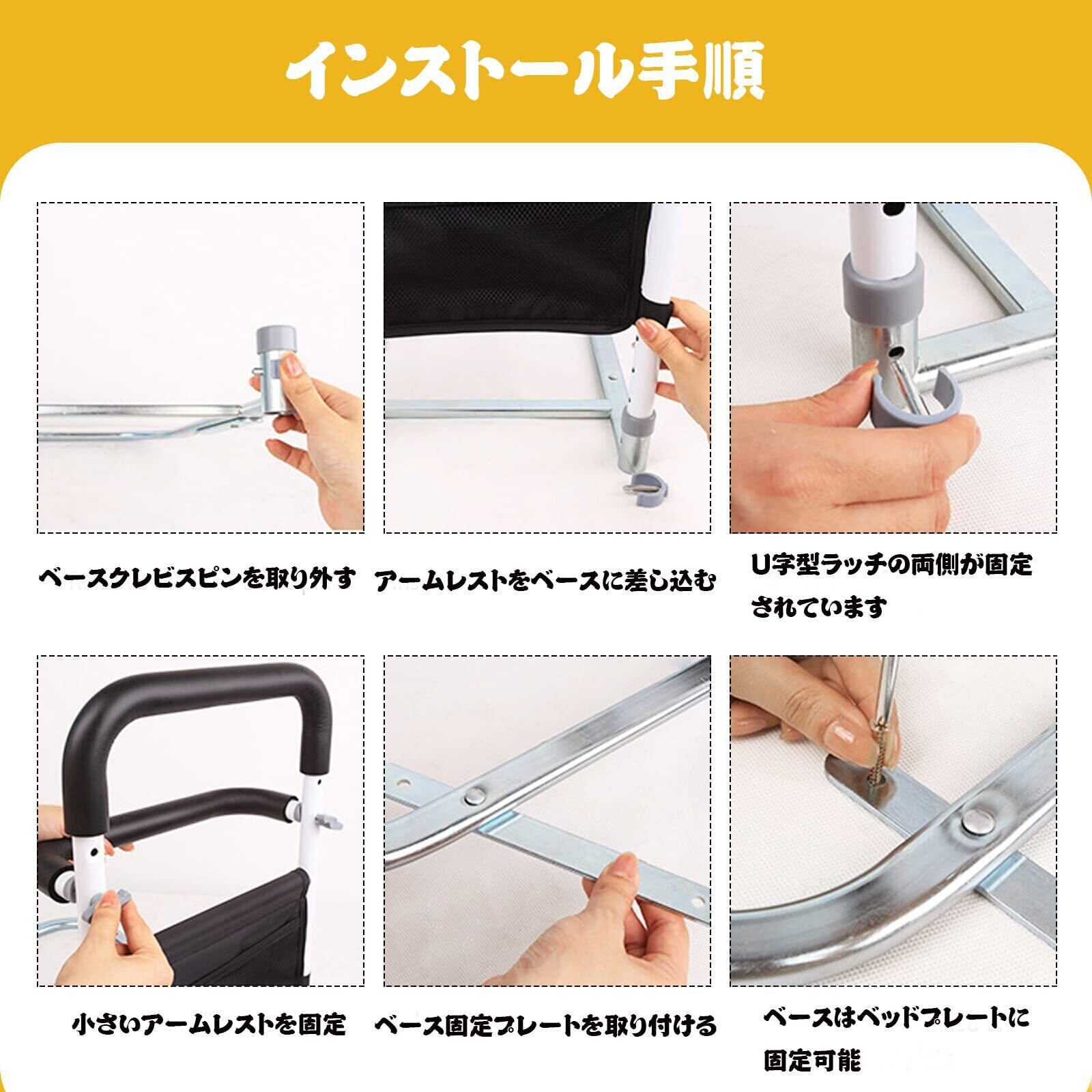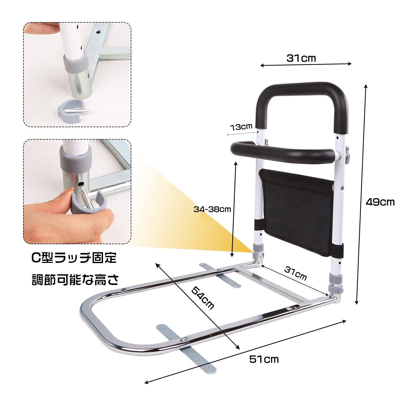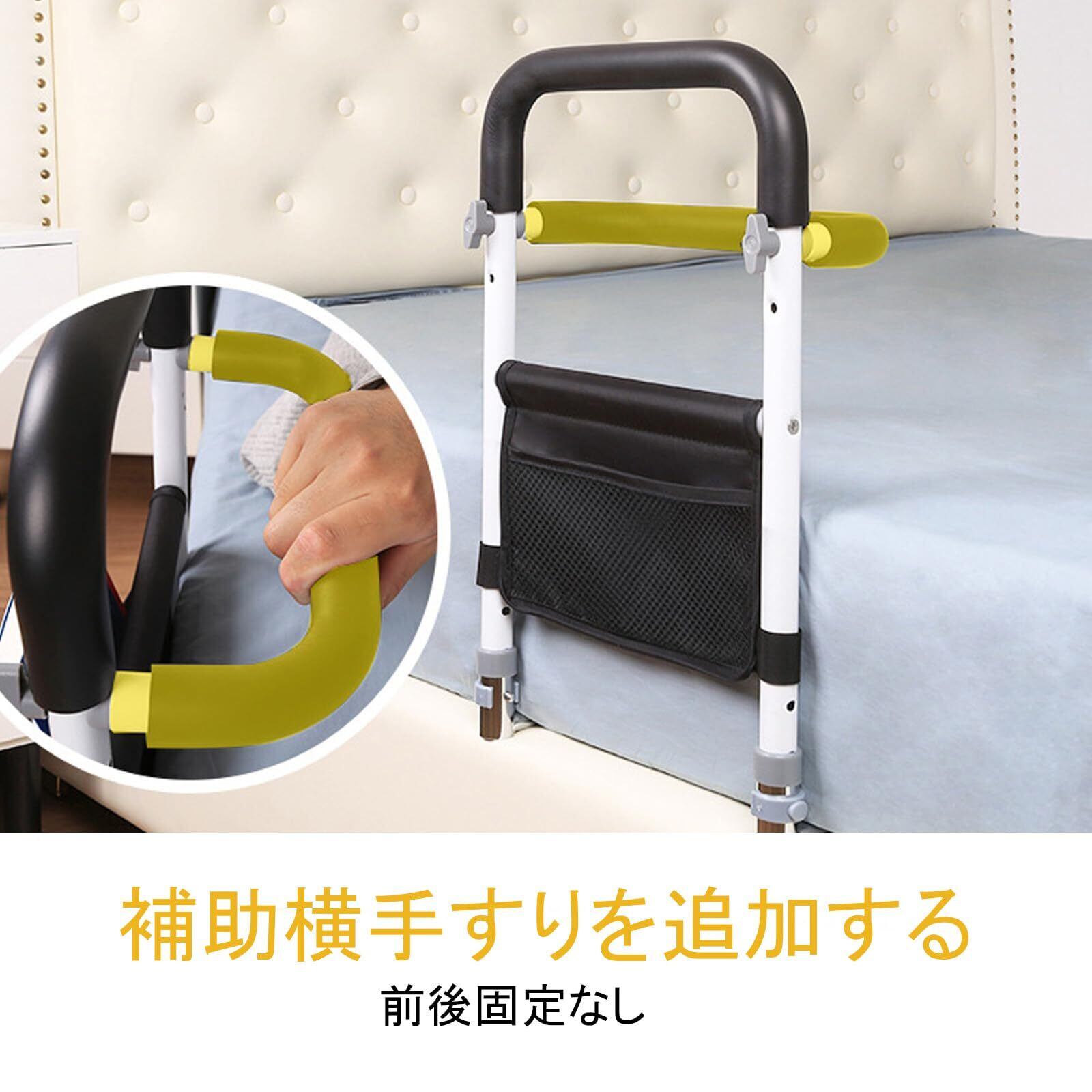 ベッドガード 介護 ベッド用 起き上がり手すり 立ち上がり補助 サイドレール 3段階高さ調節可能 介護用品 ベッドアーム ハンドル 折りたたみタイプ 転落防止 小物整理バッグ付 組み立て簡単