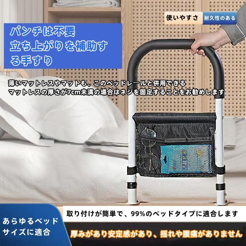 【新春セール】ベッド 手すり ベッド 立ち上がり補助 ベッド 介護用品手すり 高齢者向けのホームベッドレールバーハンドル アシストハンドル ベッドアーム ベッド 介護用品手すり 立ち上がり 補助 起き上がり鉄片なし ホワイト