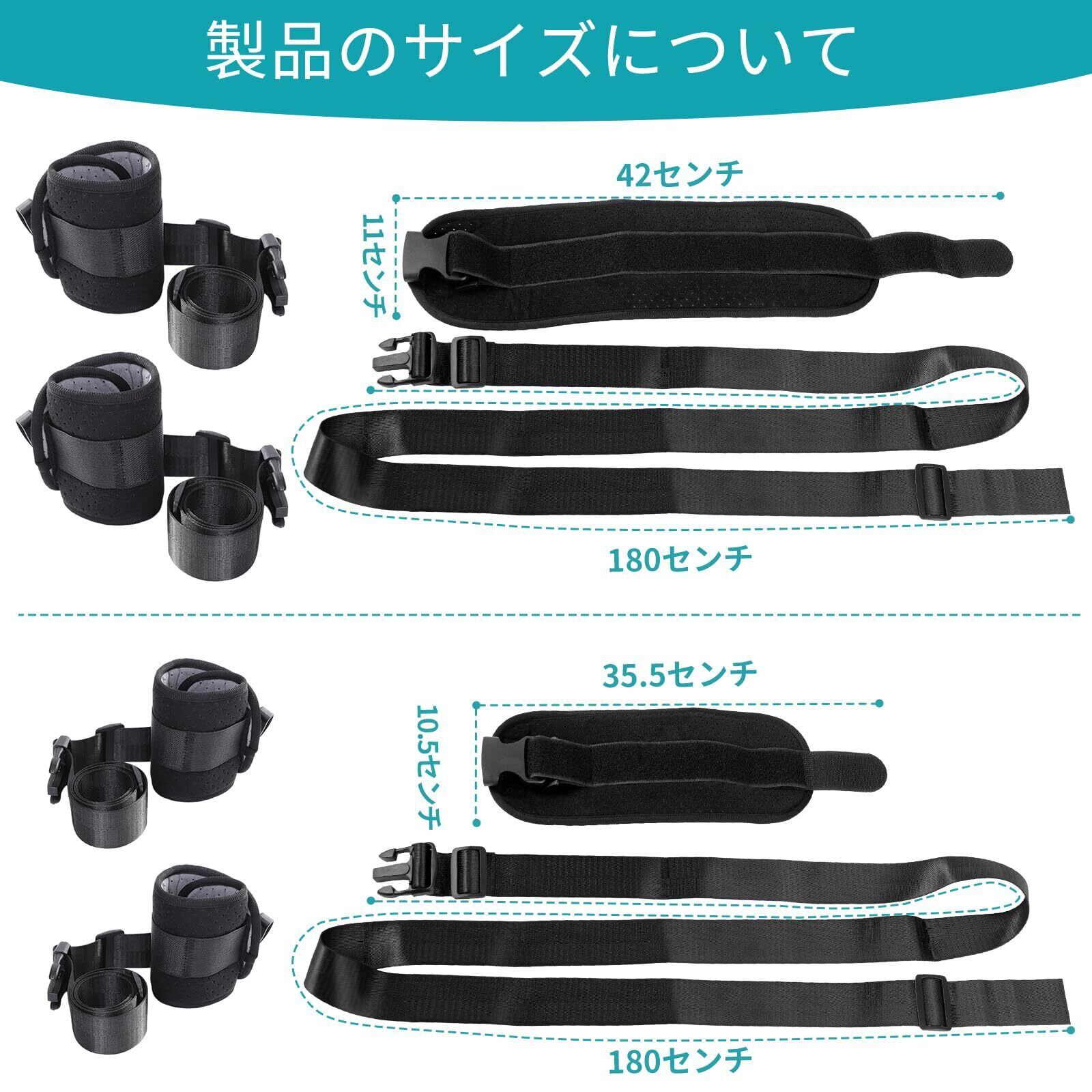 使いやすさ:拘束バンドのストラップは丈夫で耐久性がある。通気性スポンジで快適性を高め、手首・足首はマジックテープ + クイックリリースバックルで、着脱簡単で繰り返し着脱の手間を省く。