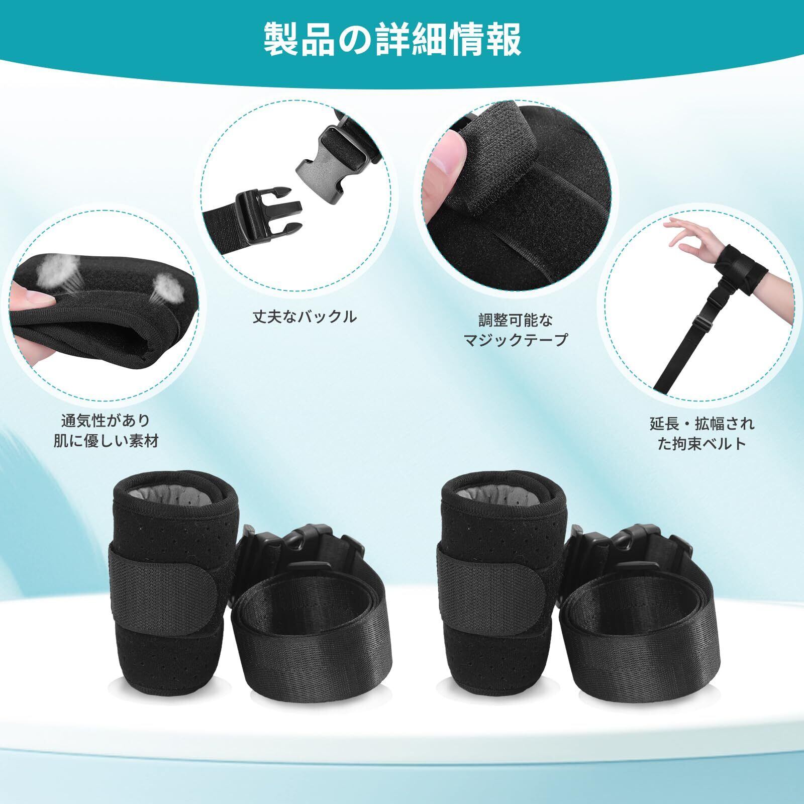 快適通気:拘束バンドは柔らかく通気性の良い素材を採用。装着時の快適性を確保し、長時間使用でも不快感を避けられる。