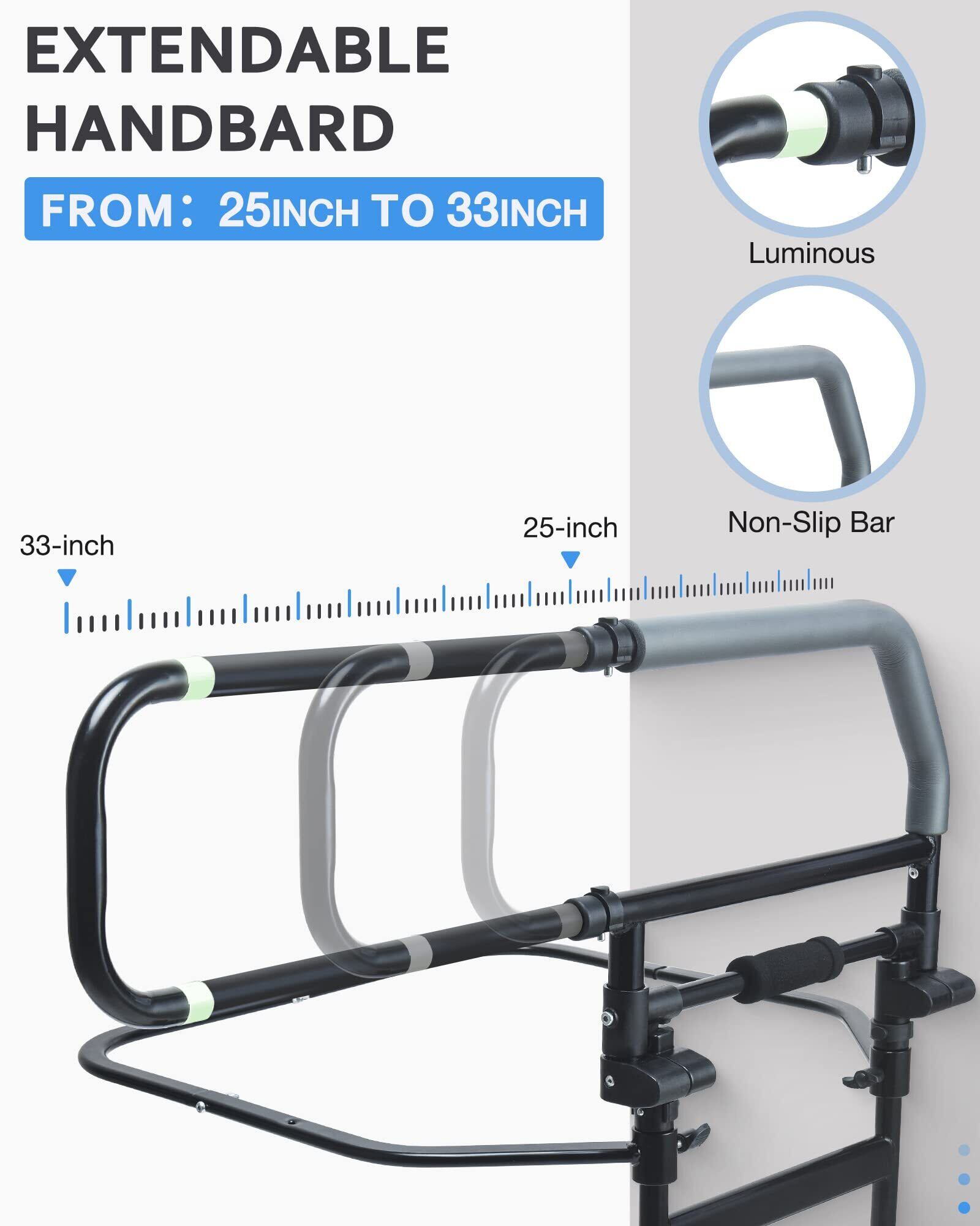 Sangohe 高齢者用ベッドアシストレール 調節可能なベッドグラブバーハンドル 収納ポケット付き 自宅や寮でベッドに出入りするための安全な補助具 - キング、クイーン、フル、ツインにフィット
