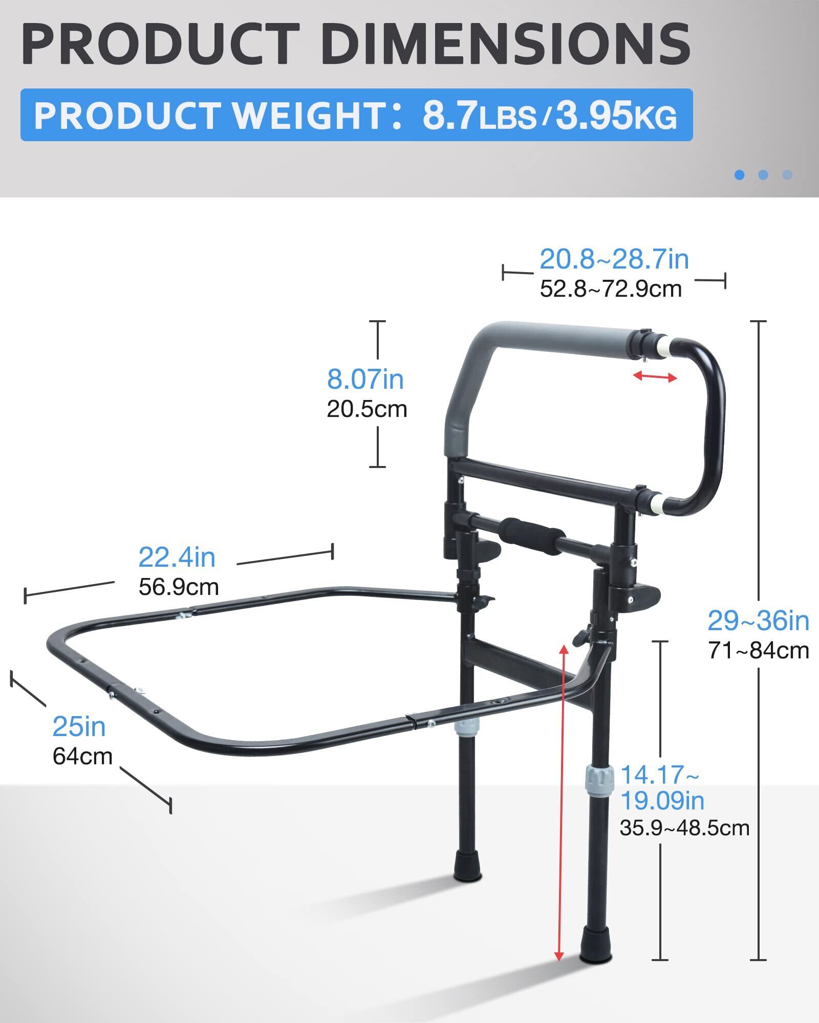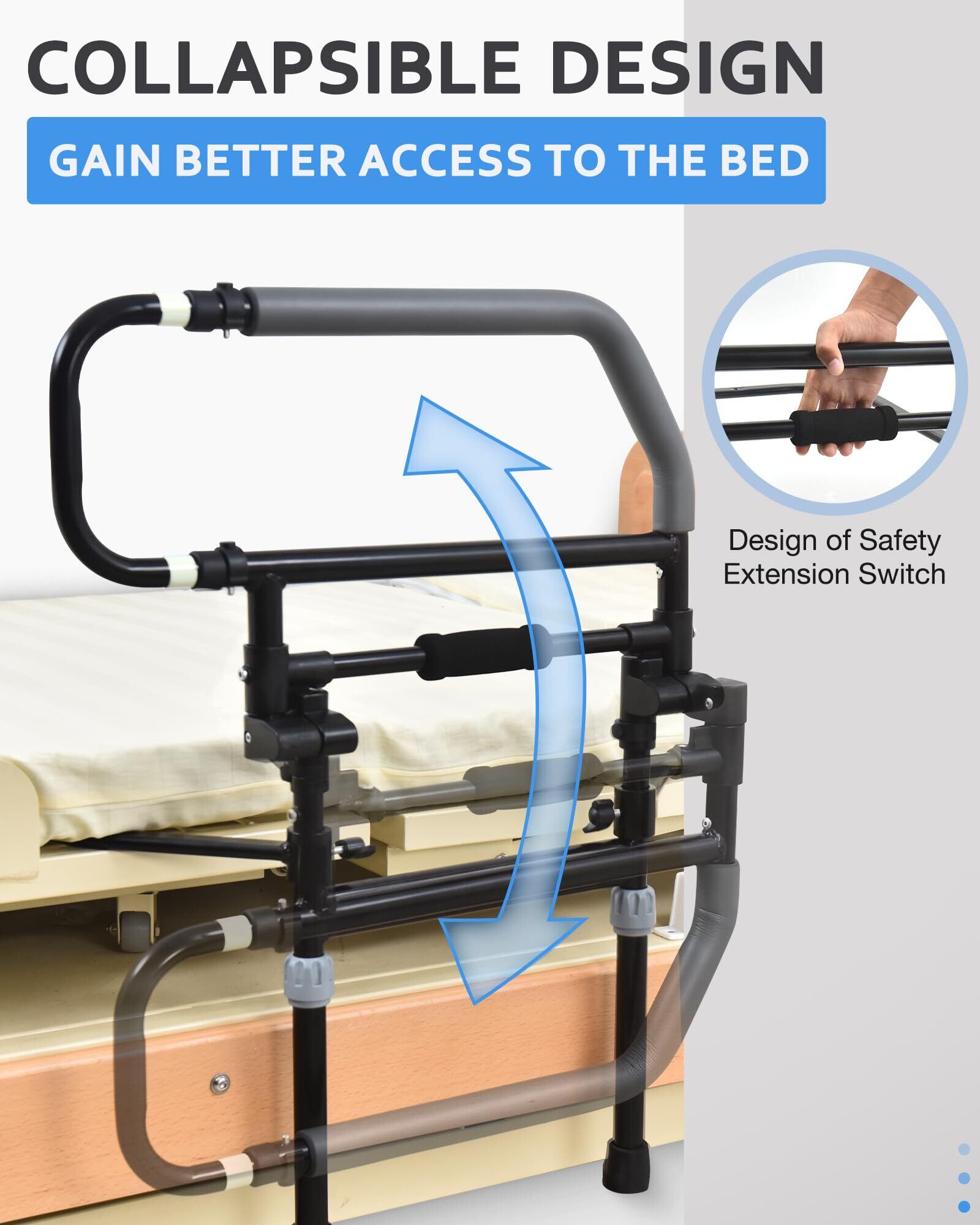 【在庫セール】Sangohe ベッドアシストレール 高齢者用 折りたたみ式 ベッドレール 高齢者用 調節可能なベッドグラブバーハンドル 高齢者用 収納ポケット付き 504E