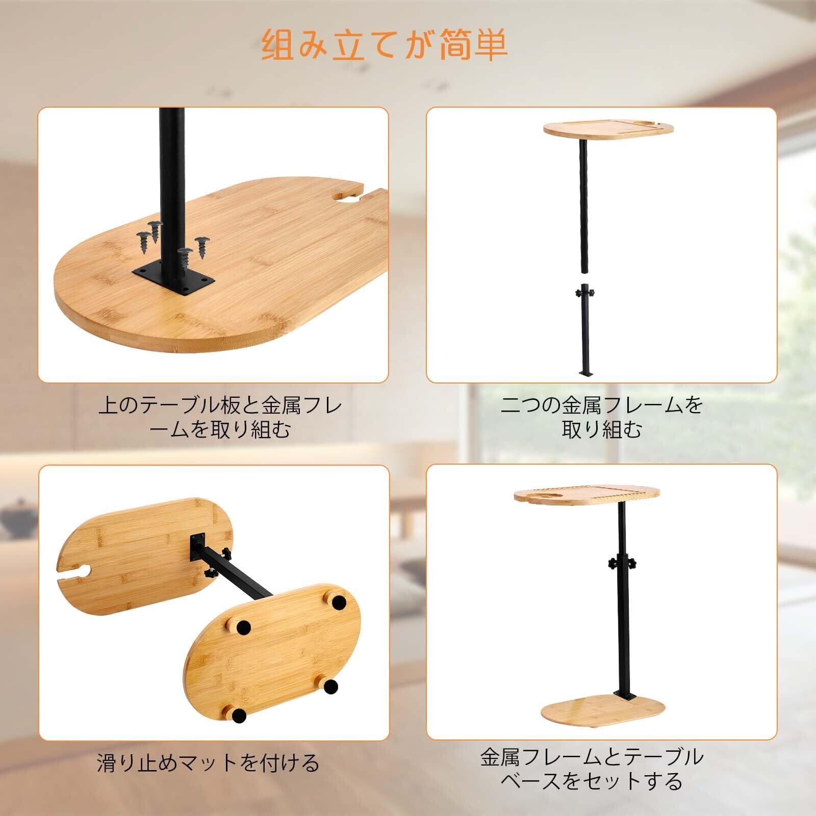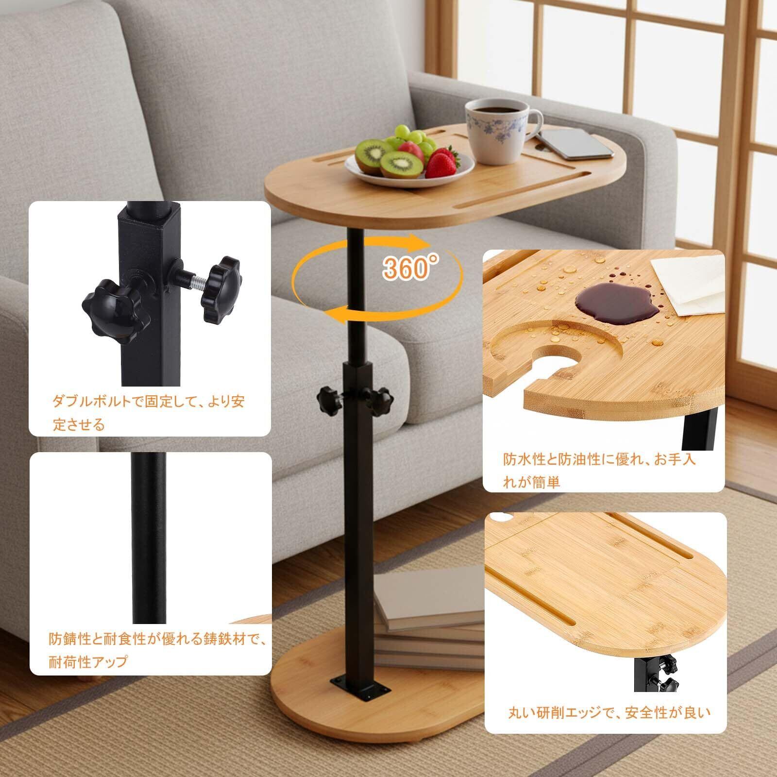サイドテーブル 昇降式 ベッドテーブル 360度自由回転 差し込み式 42-82cm無段階高さ調節 回転ソファーテーブル 安定が優れる介護テーブル 耐水 耐高温 PCテーブル 在宅勤務 省スペース 組立簡単 小型家具