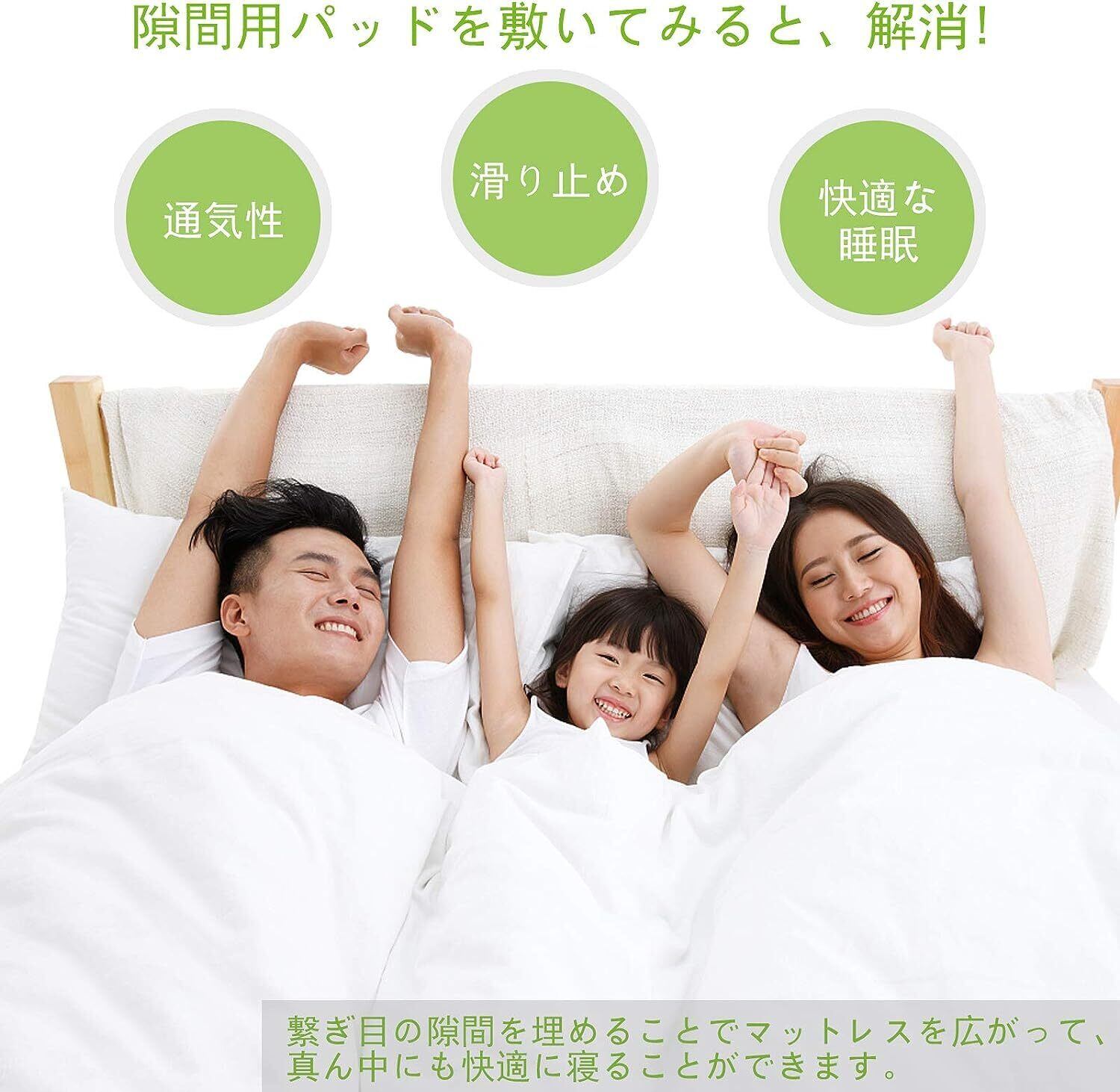 最新改良版:アップグレード版隙間パッドの幅を20cmから30cmに、パッド長さを188cmから195cmに、挟む部分の高さを6cmから7cmに贅沢に改良。マットレス固定バンドも3cmから5cmに改良します。3段の溝がベッドからのずれを防ぎます。