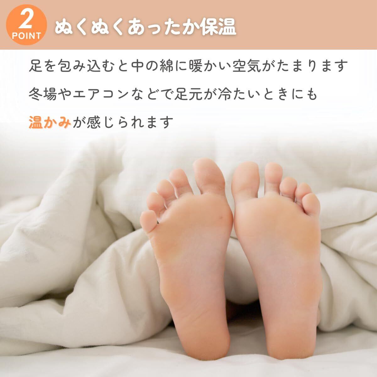 【寒さに負けない保温構造|エアコン冷え対策にも】 中綿に暖かい空気が溜まりやすい設計で、冷えが気になる足元をやさしく保温。 エアコン使用時や冬場の就寝中でも、足が冷えにくく快適に過ごせます。