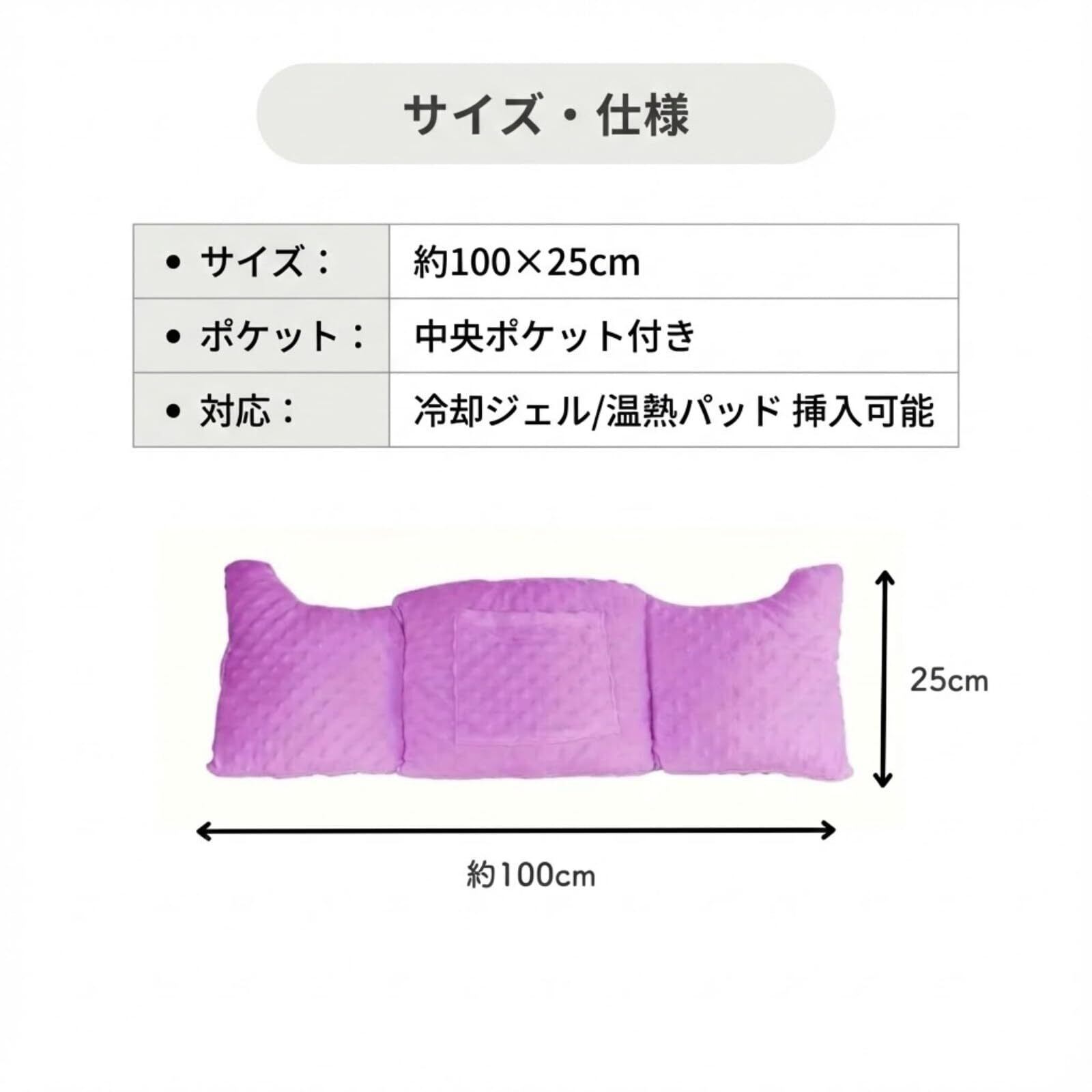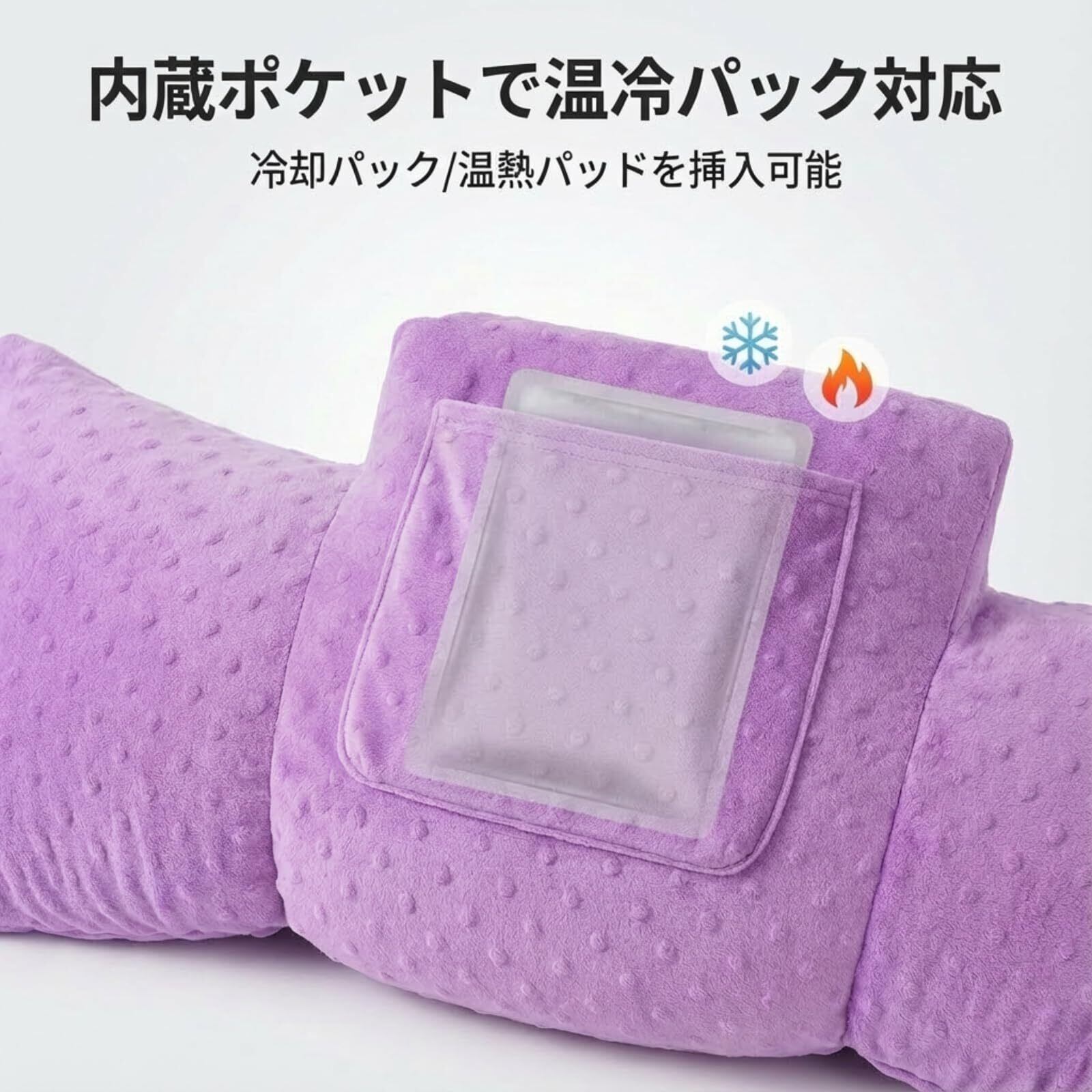 【痛みと熱感をケアする専用ポケット】クッション中央に便利なポケットを配置。保冷剤や温熱パックを挿入することで、患部の熱感を抑えたり、冷えによる痛みを和らげたりすることが可能です。