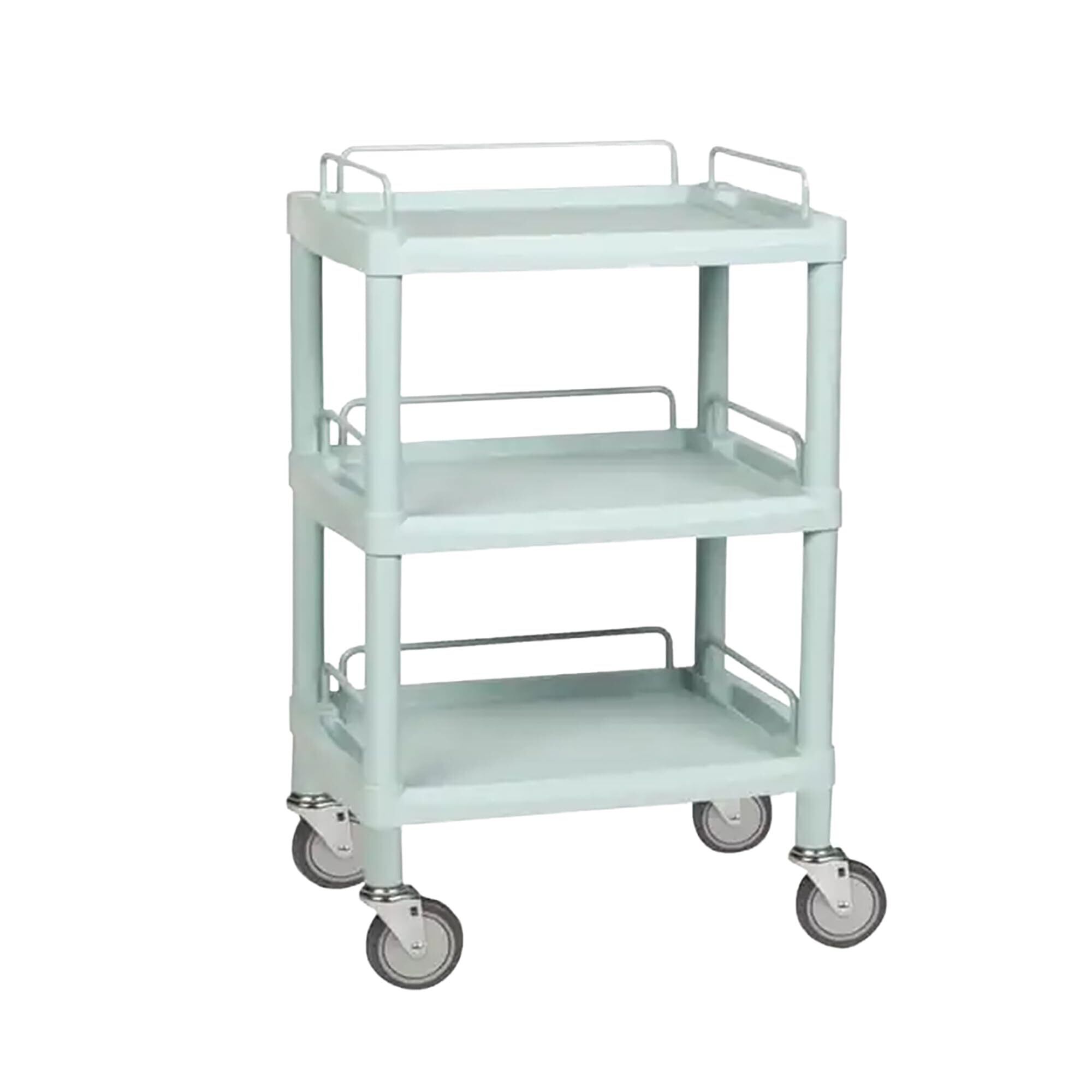 樹脂製カート操作性抜群。 カラフル軽量2段使いやすさを重視した軽量3段多目的に使える●樹脂製ですので、軽量で扱いやすく、移動もスムーズです。●3色から選べるので、用途別・使用場所別・フロア別などの色分け管理にも役立ちます。●工具不要で簡単に組み立てできます。●サイズ:W560×D385×H835㎜●重量:7.5㎏●材質:棚板=ポリプロピレン、支柱・手摺・キャップ=ABS●キャスター:φ100㎜●棚間隔:275㎜●耐荷重:30㎏(1段)医療、介護、病院、施設向け商品。ドクター・ナース。松吉医療総合カタログ掲載商品