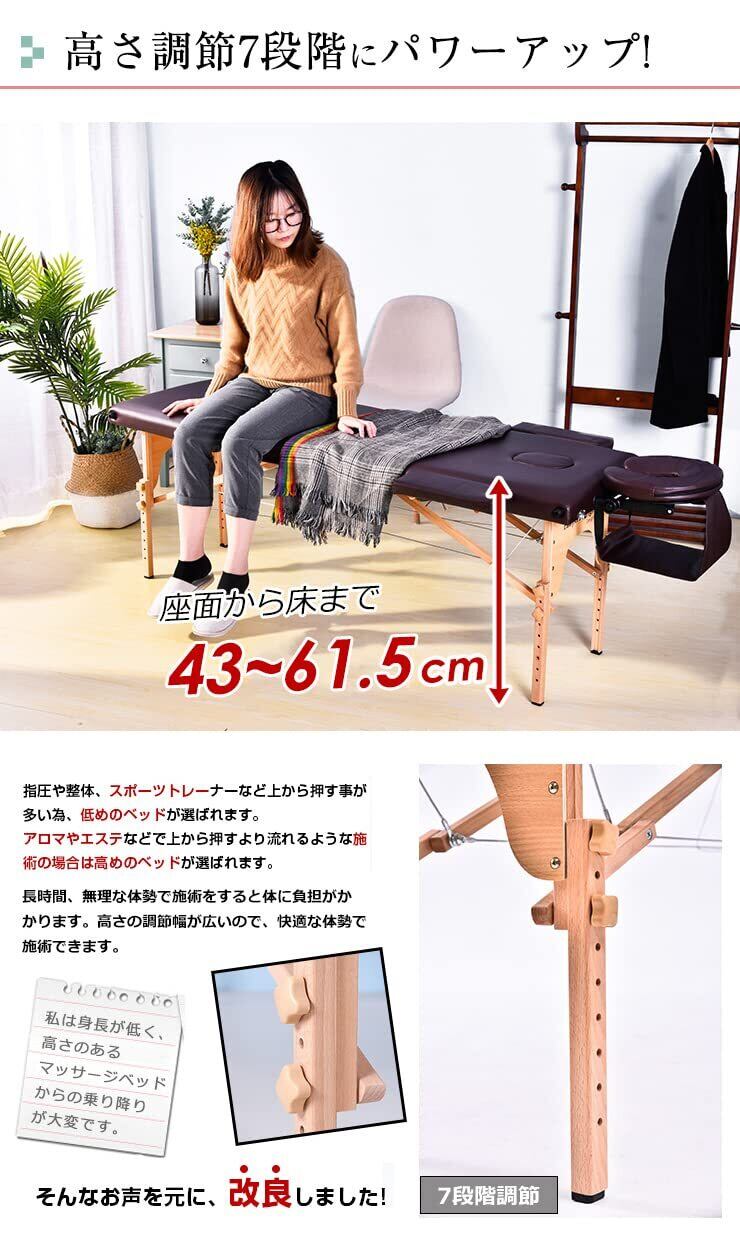 【新春セール】BTM マッサージベッド マッサージ台 エステベッド 折りたたみベッド 簡単組み立て 軽量 コンパクト (ブラウン, 186)