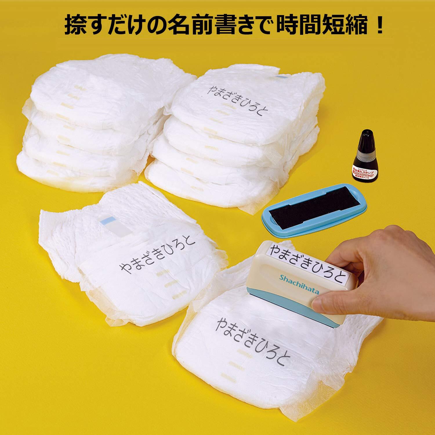 1名前書きの時間短縮! 水ににじまず、乾きの速い油性インキを採用。 たくさんのおむつへの名前書きもスタンプで簡単にできます。 2ひと目で確認できる! 名前が読みやすい大きな文字サイズのスタンプです。 3おむつ以外への名前書きもおまかせ! 紙・プラスチック・金属・布・木などにスタンプできます。 ※材質(軟質塩ビ等)によっては、スタンプに適していないものもございます。 また、乾燥が遅くなったり、印影のニジミが生じたりする場合がありますので確認の上ご使用ください
