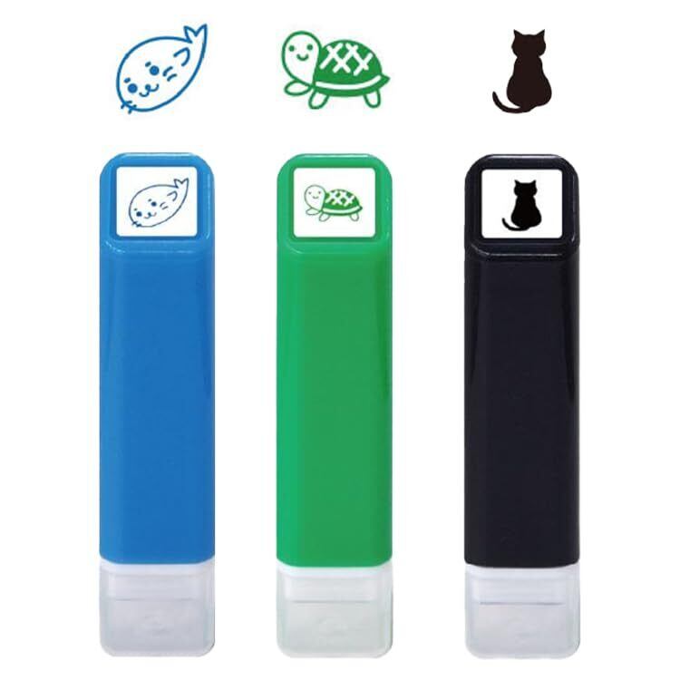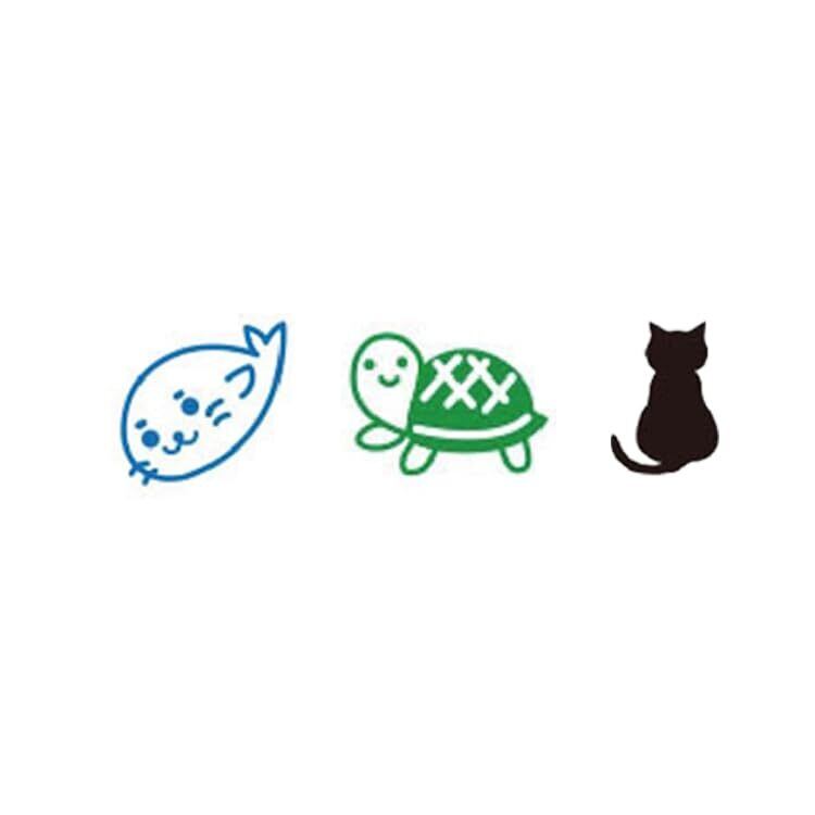 【新春セール】【3個セット】こどものかお スケジュール浸透印 スタンプ 【あざらし_かめ_くろねこ】+ オリジナルロゴ入りシールつき