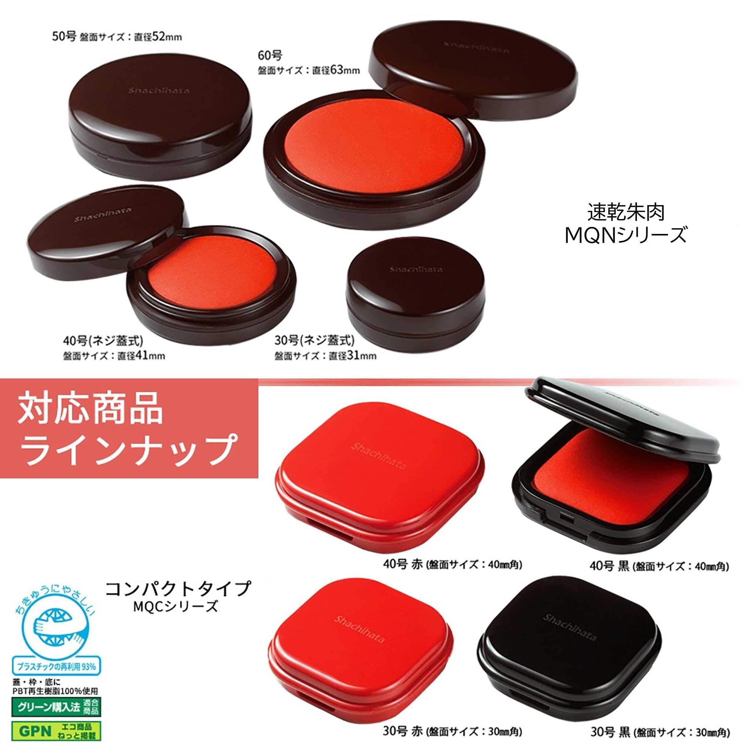 適合商品:速乾シャチハタ朱肉 MQNシリーズ( MQN-40 、 MQN-30 、 MQN-50 、 MQN-60 )および速乾シャチハタ朱肉コンパクトタイプ MQCシリーズ( MQC-40-1 、 MQC-40-2 、MQC-30-1 、 MQC-30-2 )