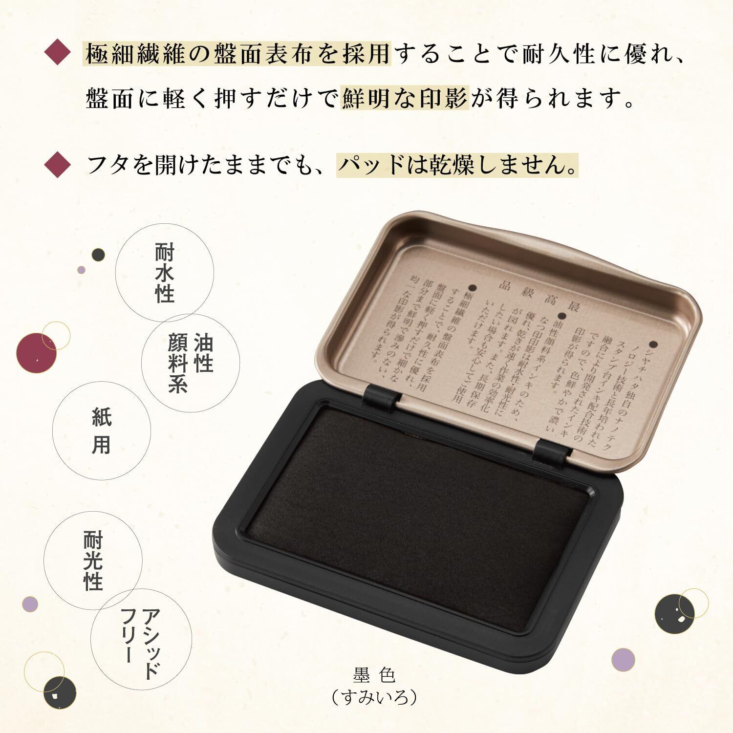 大正末期をイメージした懐かしさの感じられる意匠と現在の捺印性能を両立させた、100周年記念のスタンプ台です。人気色の墨色になります。2026年6月までの限定発売となります。