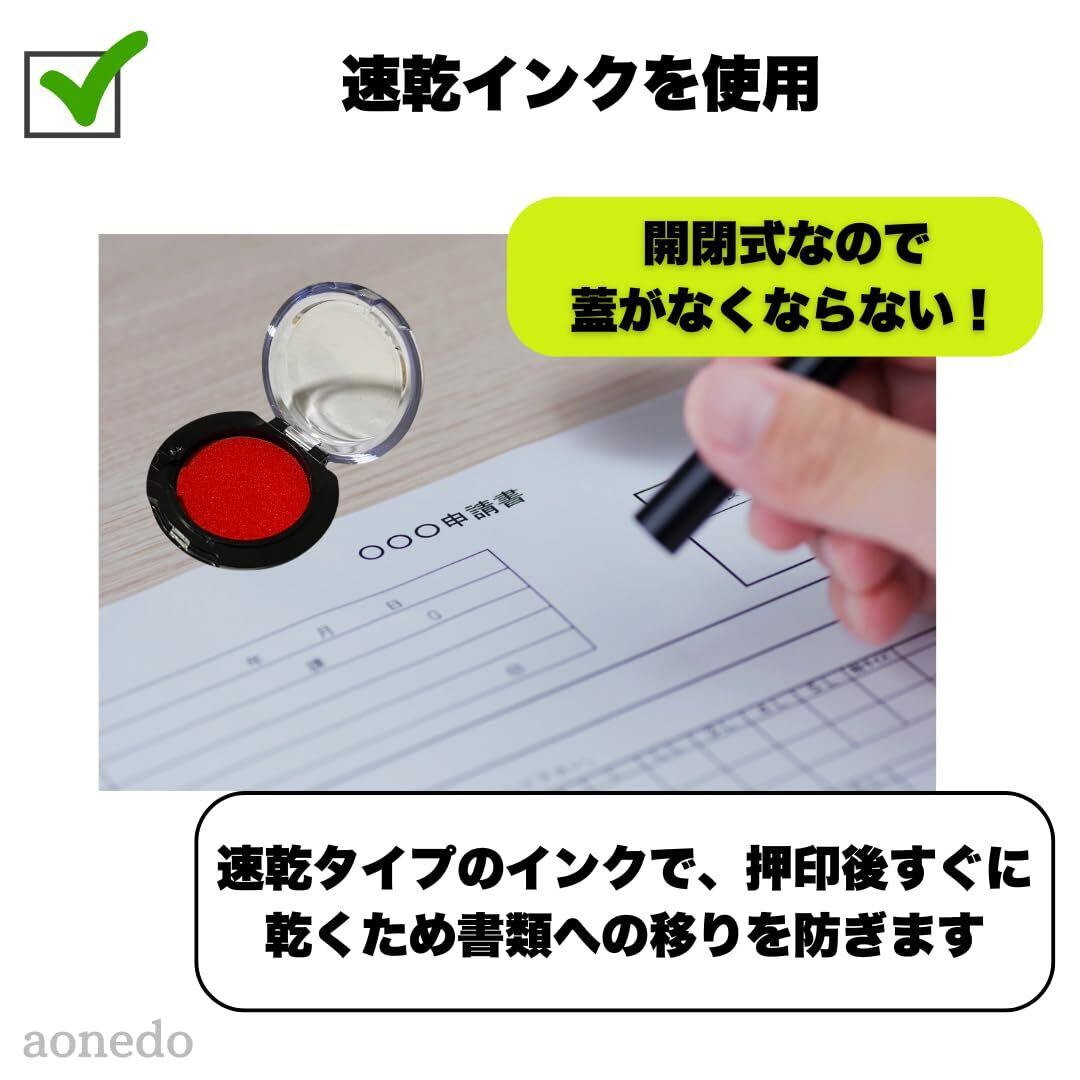 【速乾インクを使用】速乾タイプのインクで、押印後すぐに乾くため書類への移りを防ぎます。