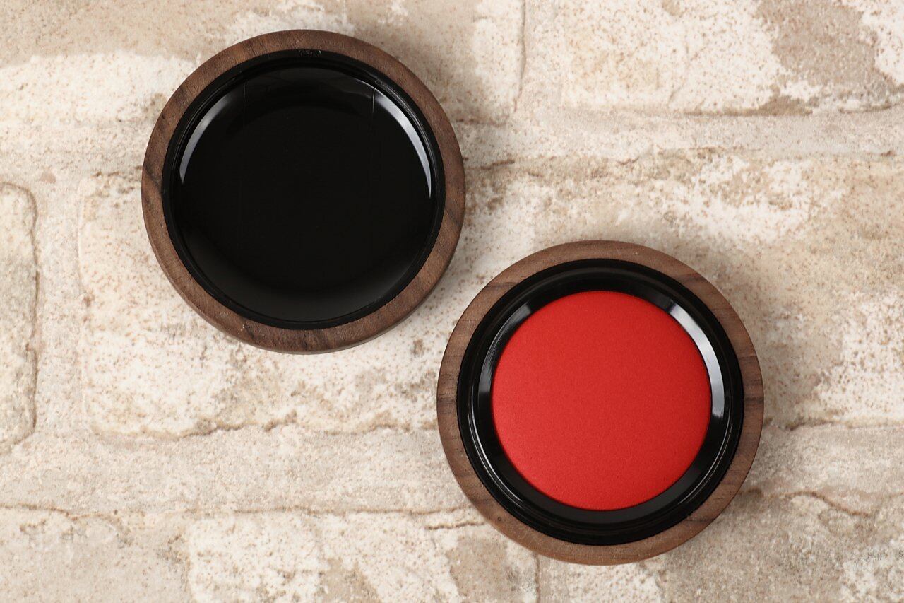 シャチハタ株式会社の協力のもと「KATOMOKU朱肉」は生まれました。 シヤチハタ朱肉(エコス)に高級材ウォールナットを使用し、木製カバーを作り、高級感を演出しました。 ・お客様から押印を頂くビジネスユーザー様に ・高級志向の個人ユーザー様に このような方々に使って頂きたい商品になっております。 木を愛する方用には、木の質感残るオイル仕上げを高級志向の方には朱肉のイメージを壊さないようウレタン塗装仕上げを用意しました。