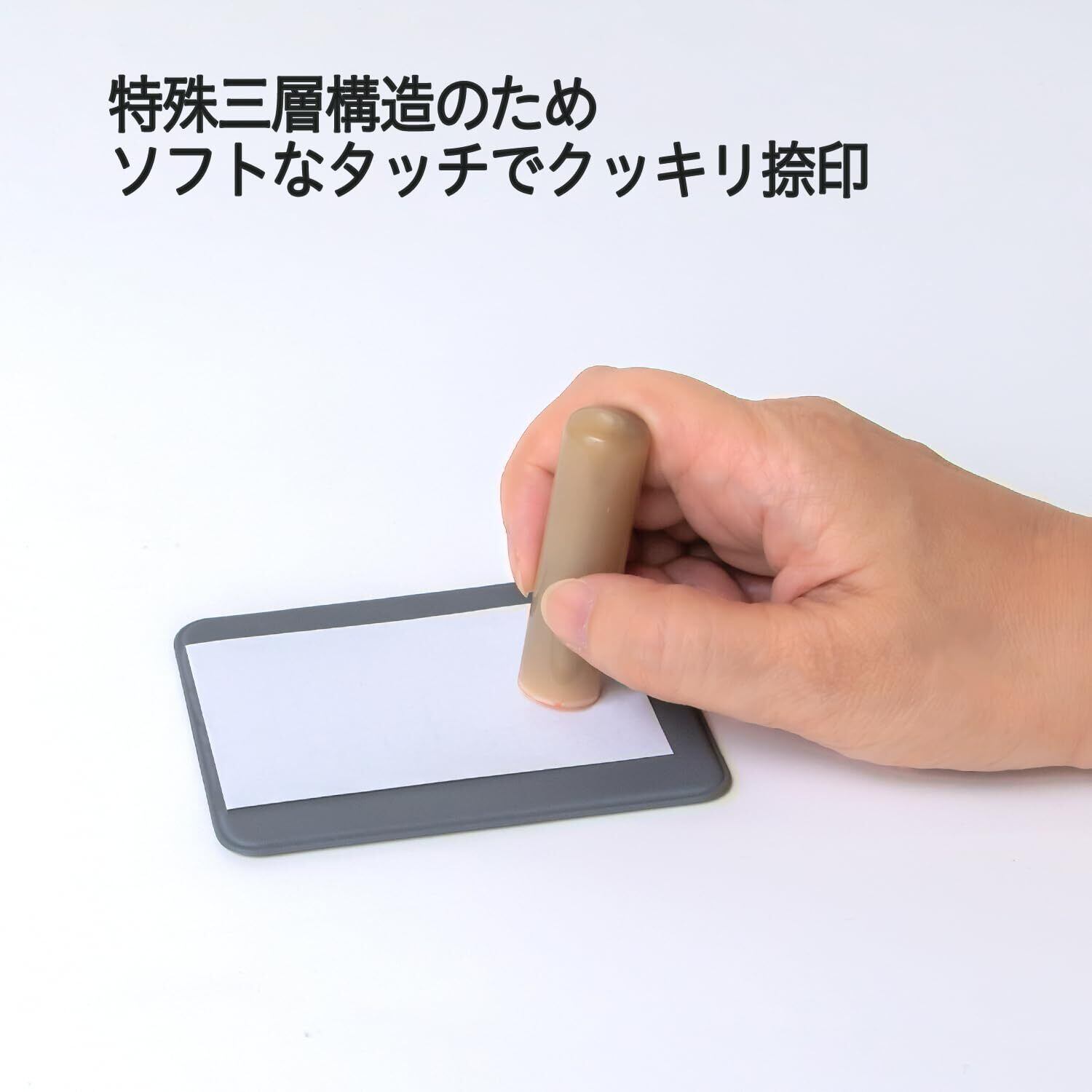 【材質】ポリ塩化ビニル(PVC)、捺印面:スポンジ状PVCレザー(グレー)、芯材:硬質PVC(透明)、下敷面:軟質PVC(透明)