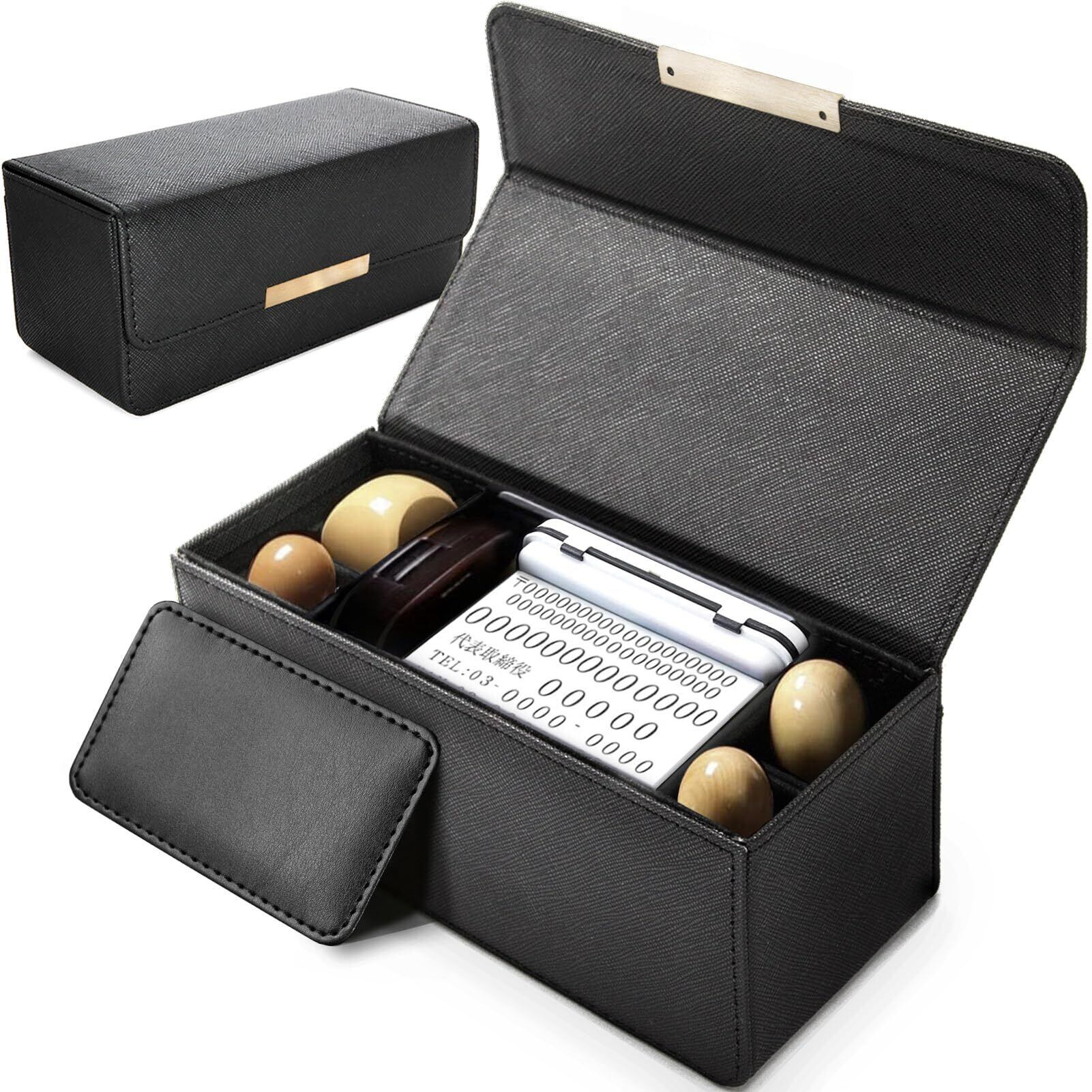 印鑑ケース 法人 ハンコケース ゴム印ケース 印箱 判子ケース 法人用 会社 (実印 銀行印 角印 住所印 社判 社印 朱肉 スタンプ台 ビジネス用スタンプ 捺印マット)【捺印マット付属】【大型サイズ】 (黒)