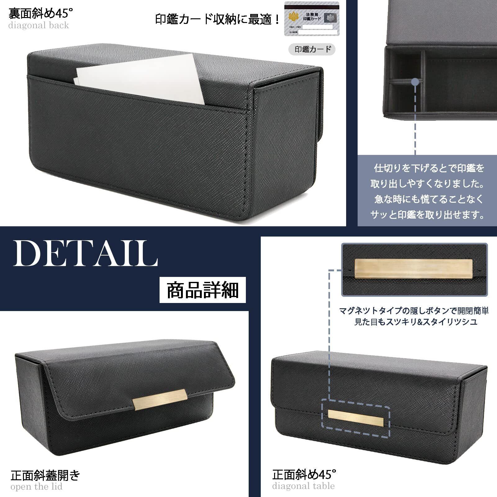 ■機能性:印鑑ケース耐久性があり傷や汚れに強いので、本革のようなお手入れ無しで、ご購入から長くご使用していただけます。また、蓋部分の接地面はマグネット式を採用しており、開け閉めが片手で簡単に行え、ストレスを感じさせません。