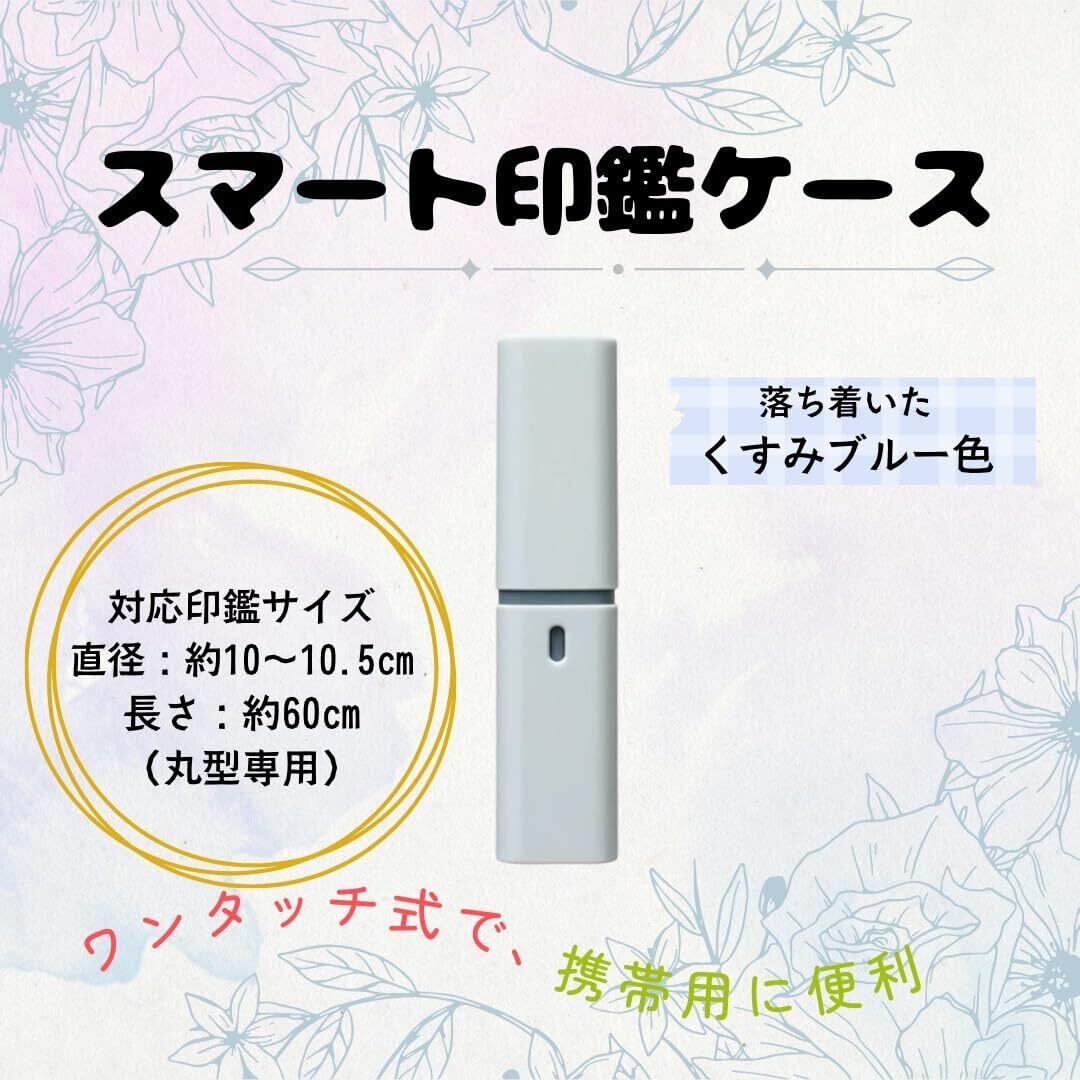 スマート印鑑ケース 朱肉付き ワンタッチ式 携帯用 印鑑ケース 直径10〜10.5mm/約60mm対応 (くすみブルー)