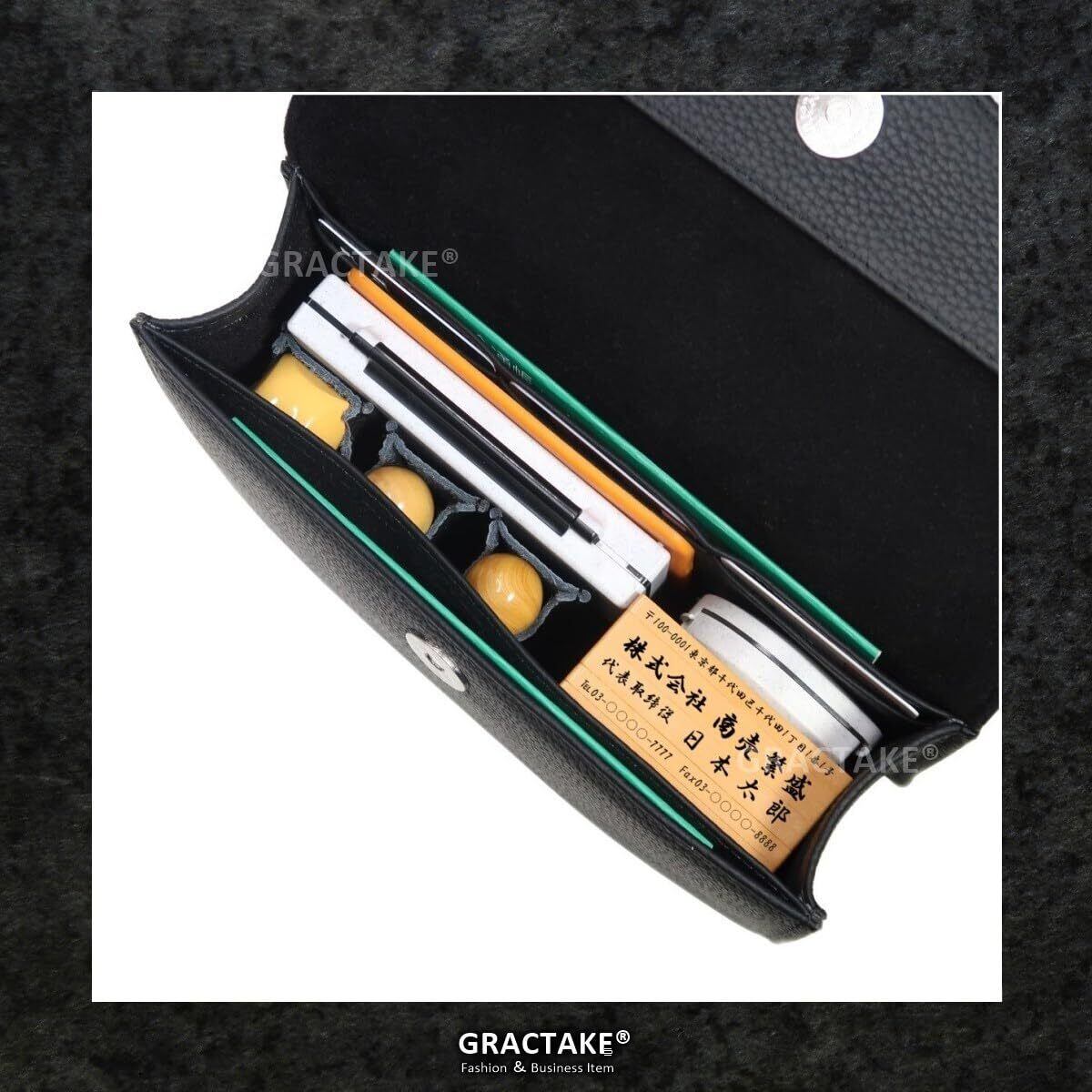 【数量限定】印鑑ケース 法人 一括収納ケース 3本 ゴム印 (実印 銀行印 角印 認印 横判 など) 持ち運び 携帯用 本革 牛革製 06