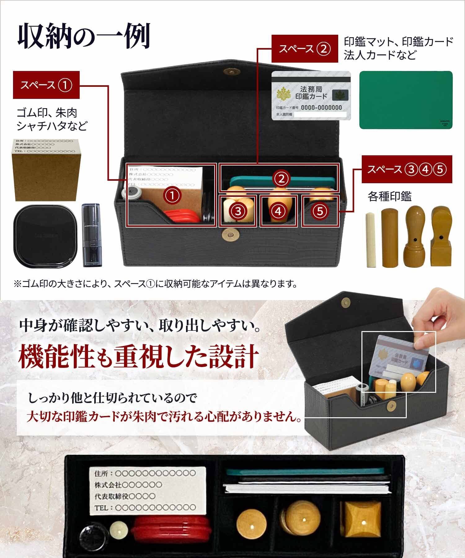 【購入前のご注意】当商品は印鑑ケースのみの販売となっております。印鑑、ゴム印、朱肉などは付属しておりません。お手持ちの印鑑サイズなどを確認の上、ご購入ください。