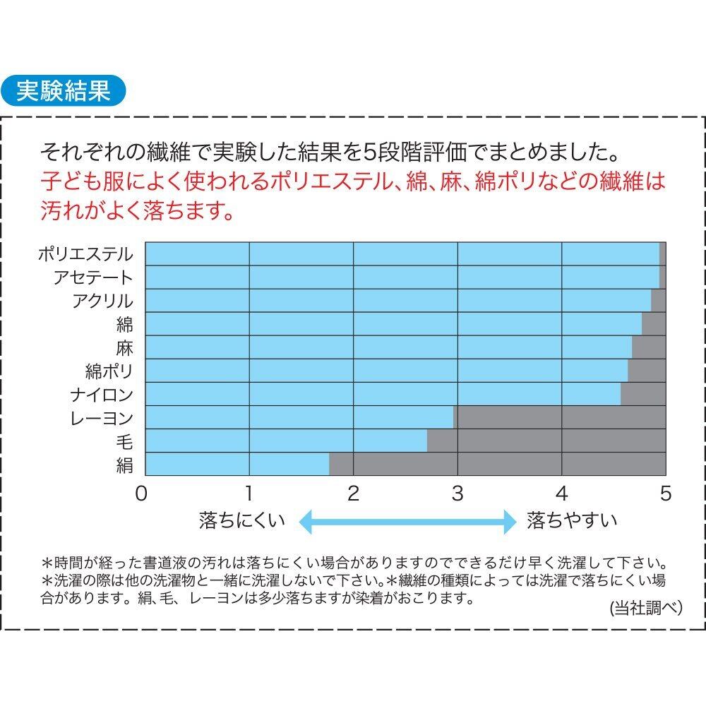 「洗って落ちる書道液」は、あやまって衣服についても洗濯落とすことができます。