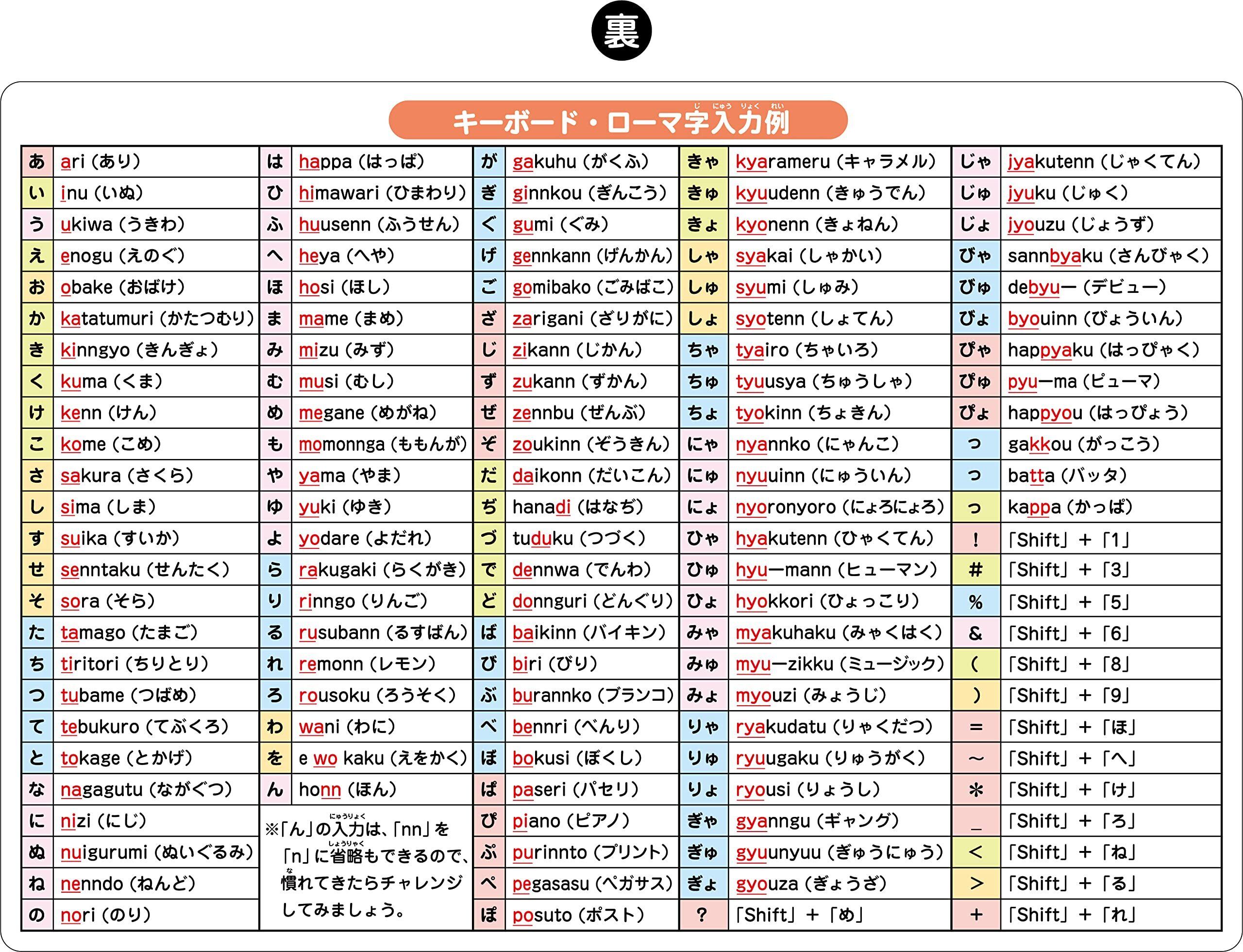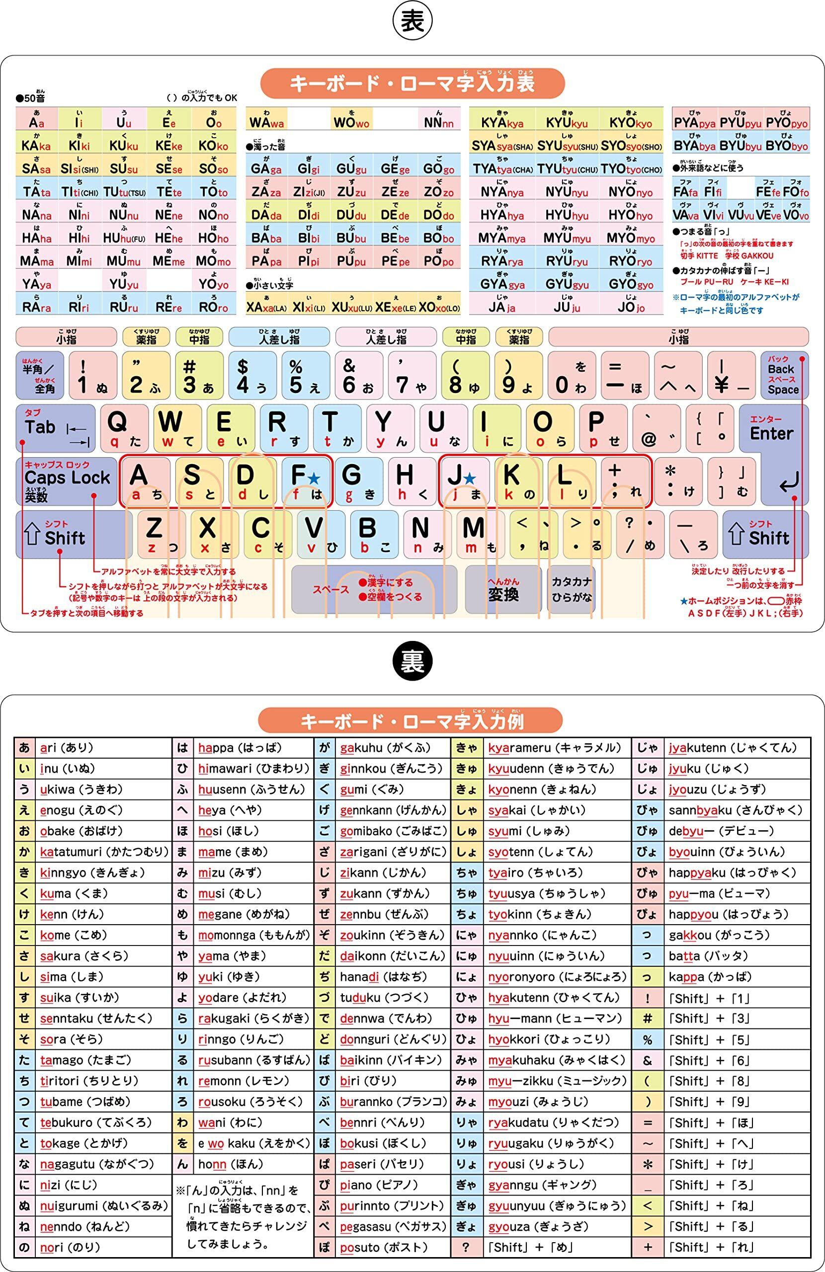 【網羅的なローマ字入力表】基本の「あいうえお」から、拗音(きゃ・きゅ・きょ)、濁音、特殊な入力まで網羅。表裏の両面に情報が凝縮されており、調べたい入力方法をすぐに確認できるので、タイピング作業がスムーズに進みます。