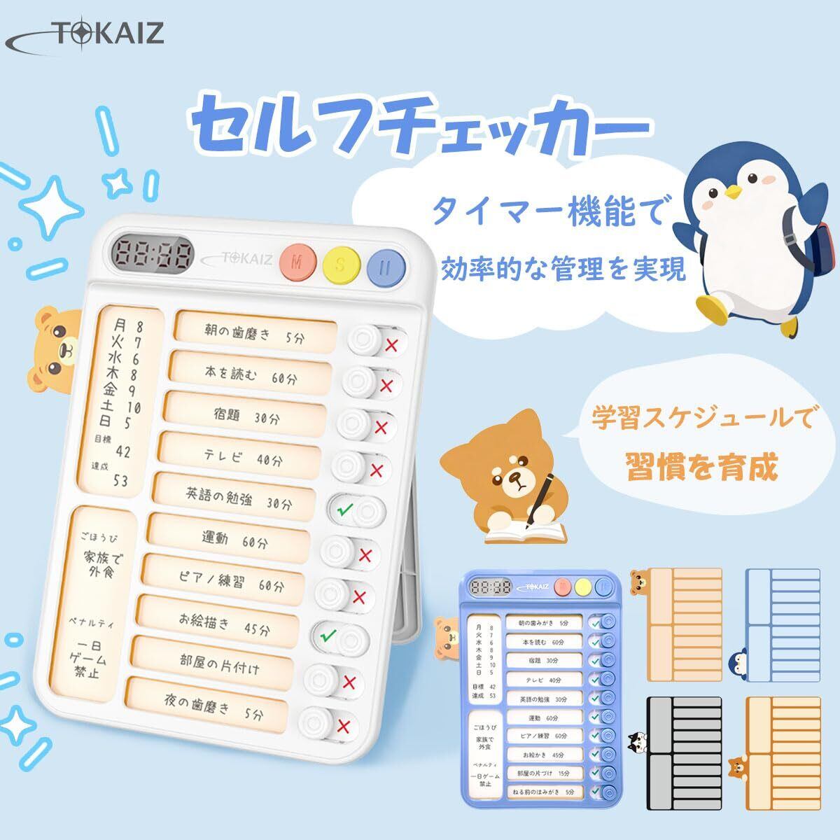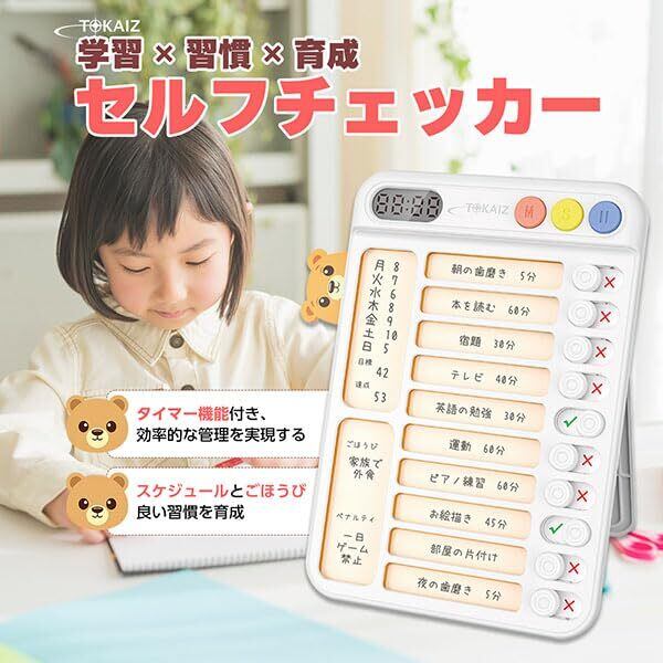 【数量限定】TOKAIZ チェックリスト セルフチェッカー 改良モデル 忘れ物防止 やることリスト 作業漏れ防止 卓上・壁掛け対応 全面 新入生準備 自律習慣 お支度 学習 自習 就学準備 報連相 チェックシート 入学 仕事 ビジネス 管理表 TSC-001 (ホワイト)