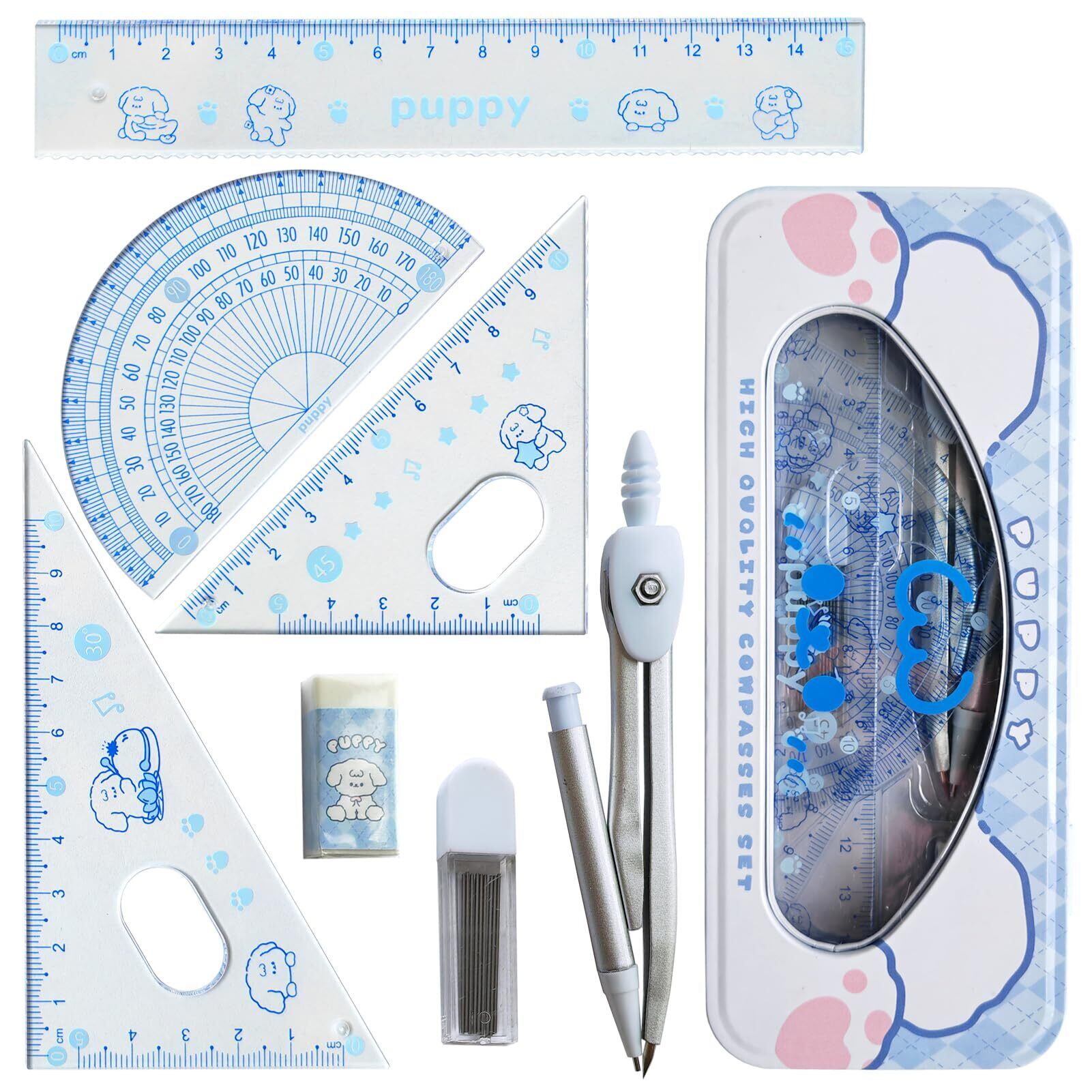 DY.2ten 定規・コンパスセット 学生用定規セット コンパス 直定規 三角定規 半円分度器 消しゴム 作図ツール 算数定規セット 小学生 文房具 幾何学 中学生 学用品 教師 スクール 多機能 製図定規 収納ボックス付き