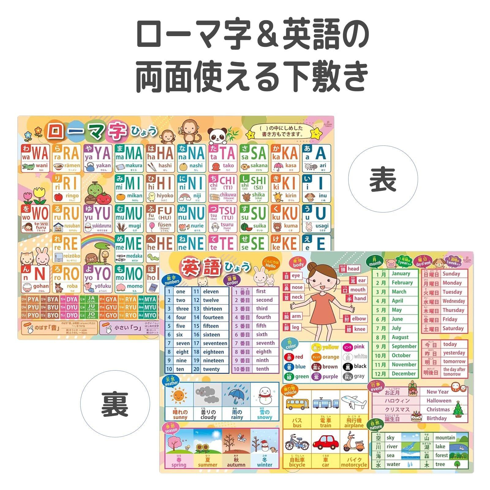 【在庫処分】ローマ字 英語 表 下敷き A4サイズ 裏表で1枚 知育 学習用具 記号 小学校受験 学校 学習 学習ポスター 日本製