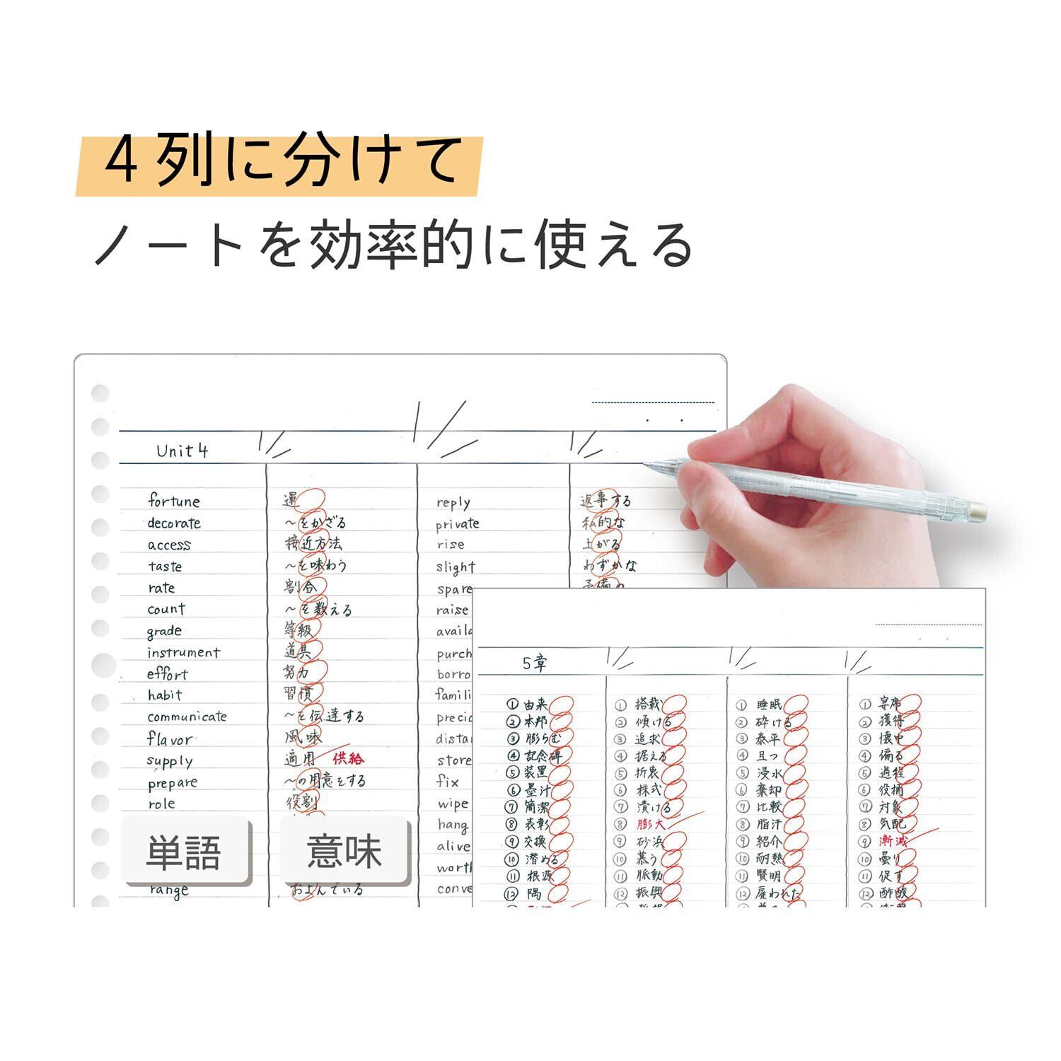 【特徴1】段差はノートを4分割する位置にあり、ノートを定規なしに一定の位置で分割できます